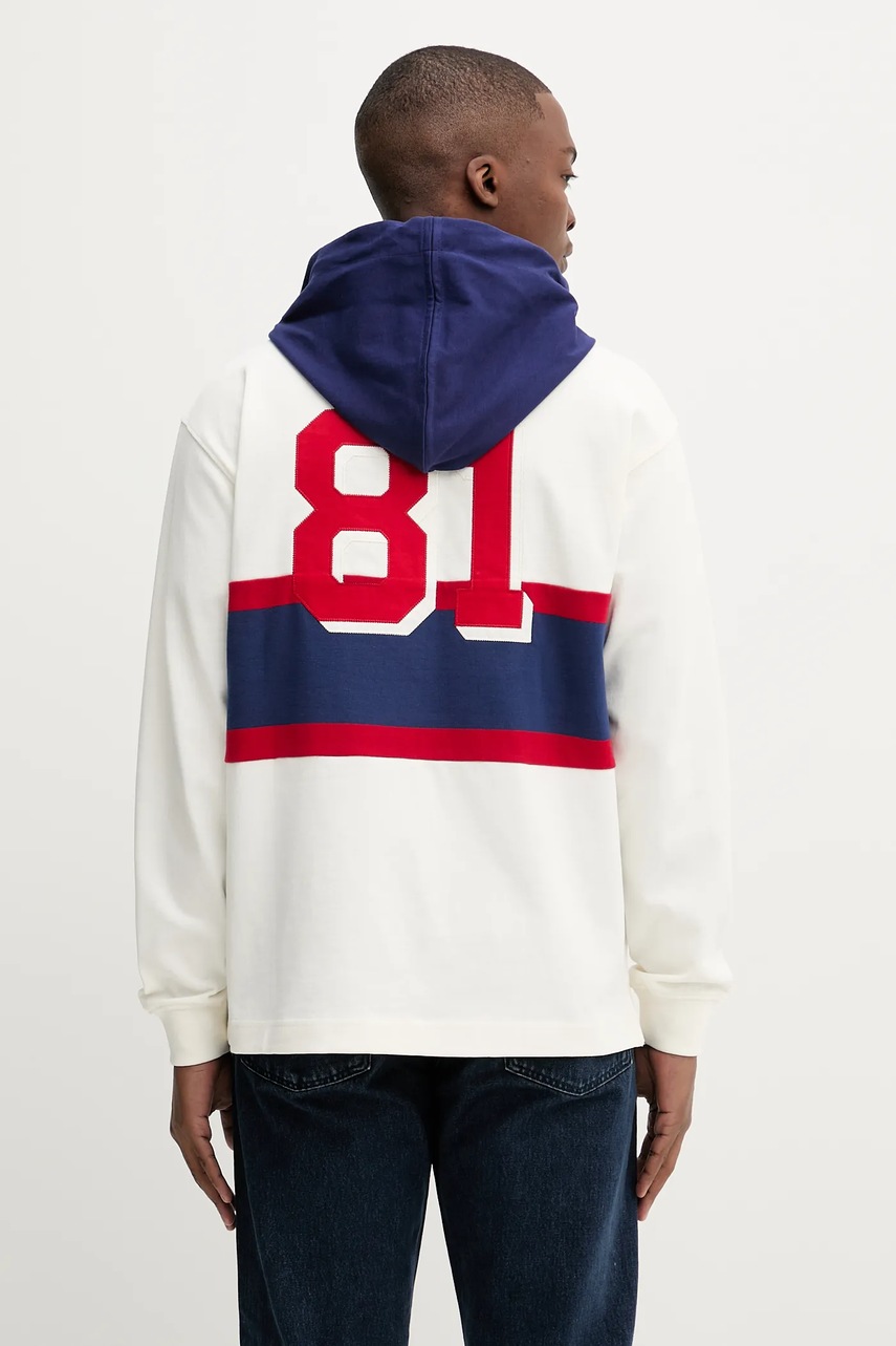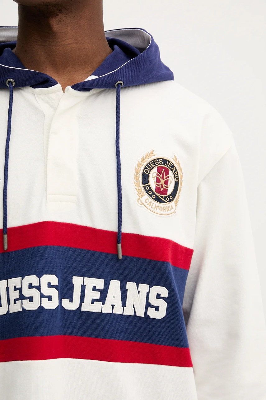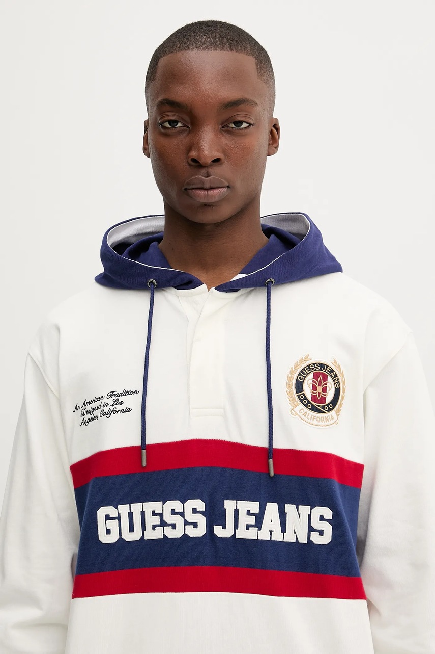 Guess Jeans bluza bawełniana męska kolor biały z kapturem z aplikacją M5YP08 KCYM1