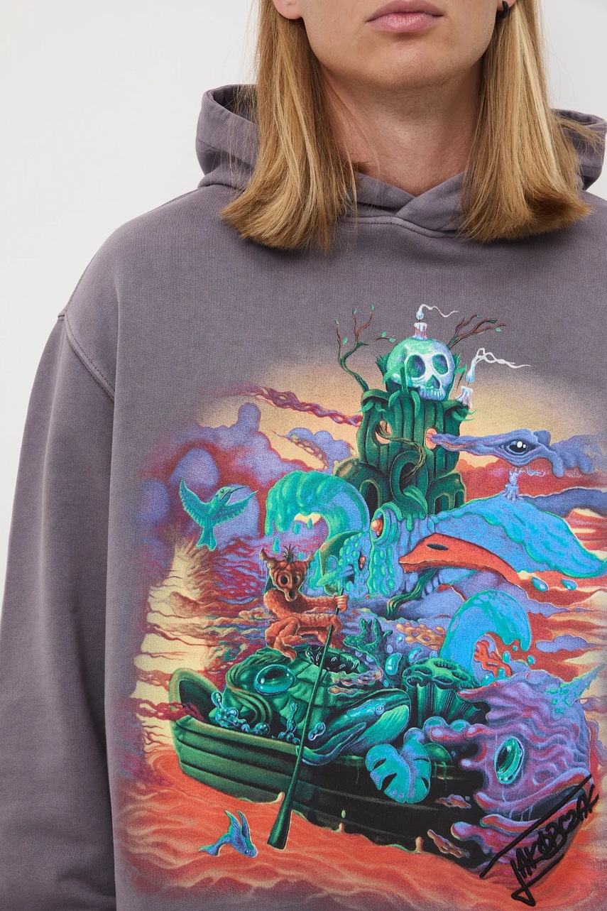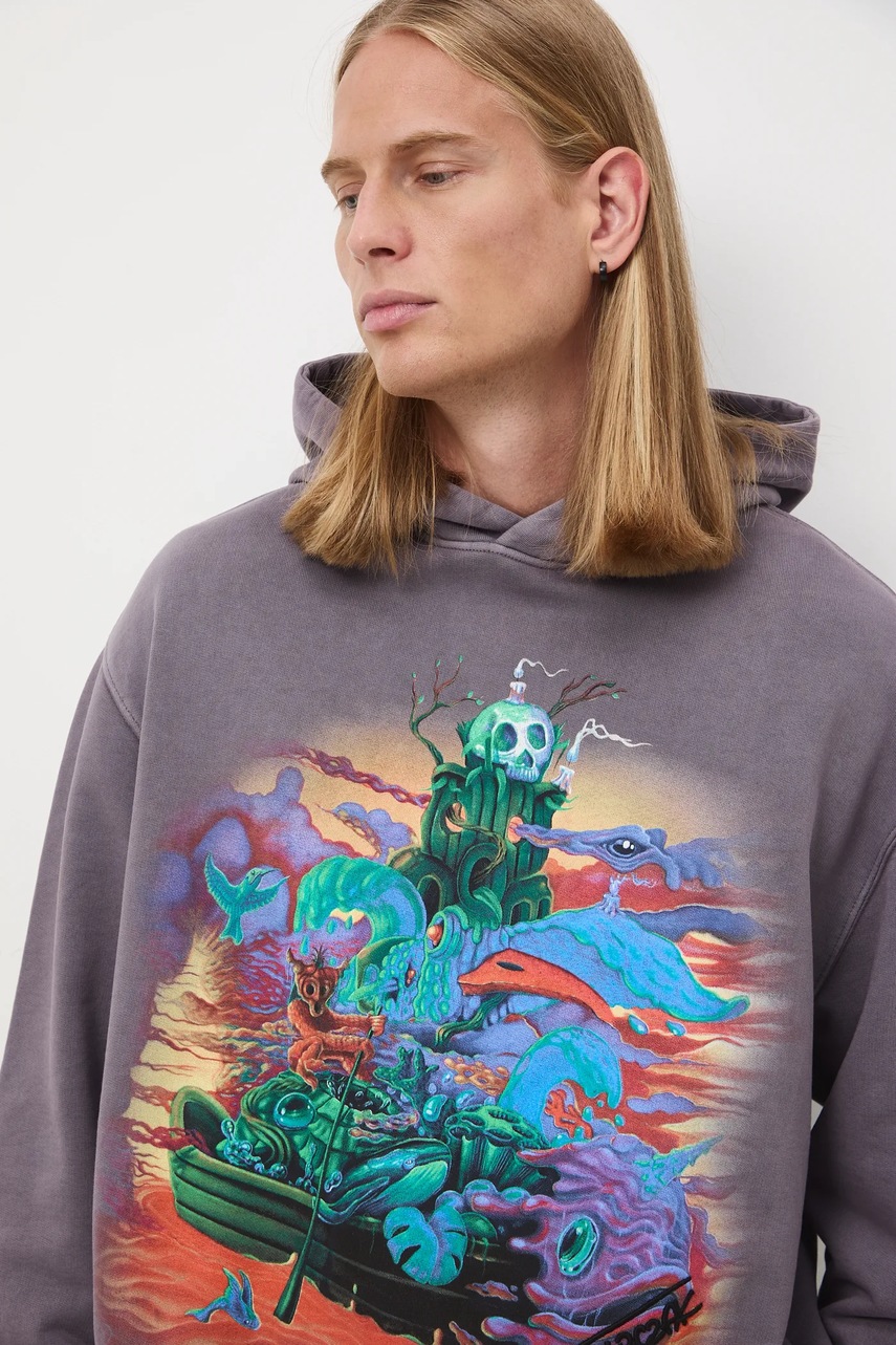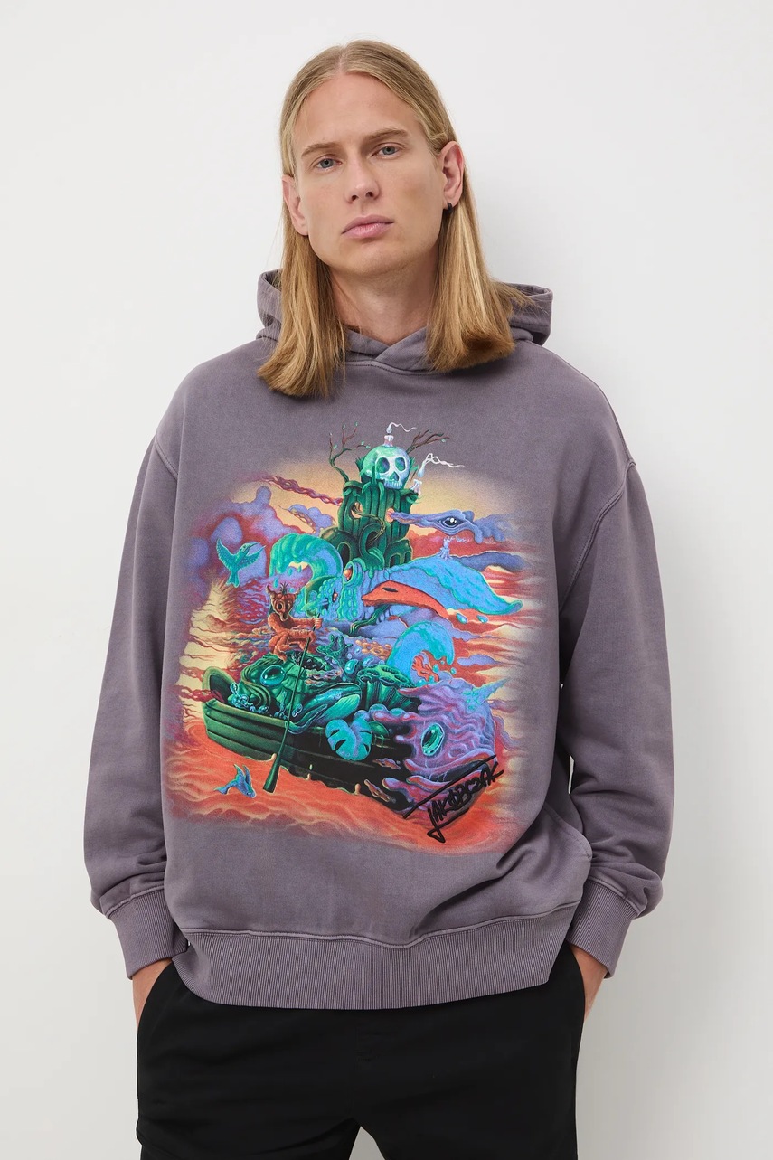 Kolekcja Tajemniczy świat Medicine to kontynuacja idei, że moda może być przestrzenią spotkania z artystami i ich wrażliwością. Powstała w oparciu o konkurs graficzny organizowany przez Medicine - inicjatywę, która daje szansę twórcom na wyjście poza ramy galerii i dotarcie ze swoją sztuką do szerokiego grona odbiorców. W tegorocznej edycji wyłoniono ośmioro artystów, których prace przeniesione zostały na ubrania. Różnorodność ich spojrzeń i estetyk nadaje kolekcji unikalny charakter. Od mocnych, ekspresyjnych grafik inspirowanych folklorem, przez ilustracje przenoszące w światy modern fantasy, aż po subtelne, minimalistyczne prace w duchu litografii - każdy projekt staje się opowieścią o innym obliczu współczesnej sztuki, medium dla młodych twórców i mostem łączącym odbiorców z nowymi zjawiskami w sztuce.Autorem grafiki jest Kamil Jakóbczak - laureat 2. miejsca w konkursie ?Tajemniczy Świat Medicine? zorganizowanym we wrześniu 2024 roku.