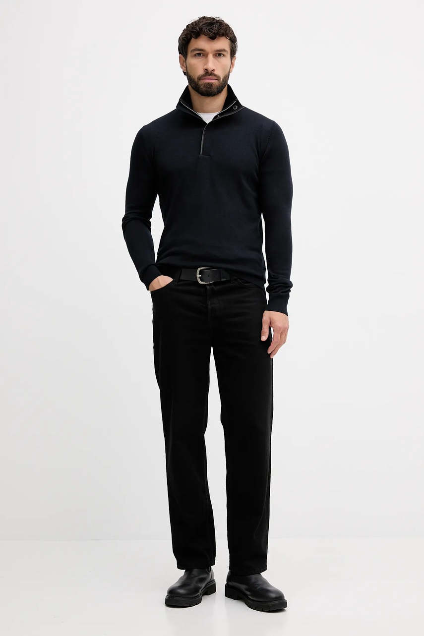 Karl Lagerfeld sweter wełniany męski kolor granatowy lekki 554399.655005