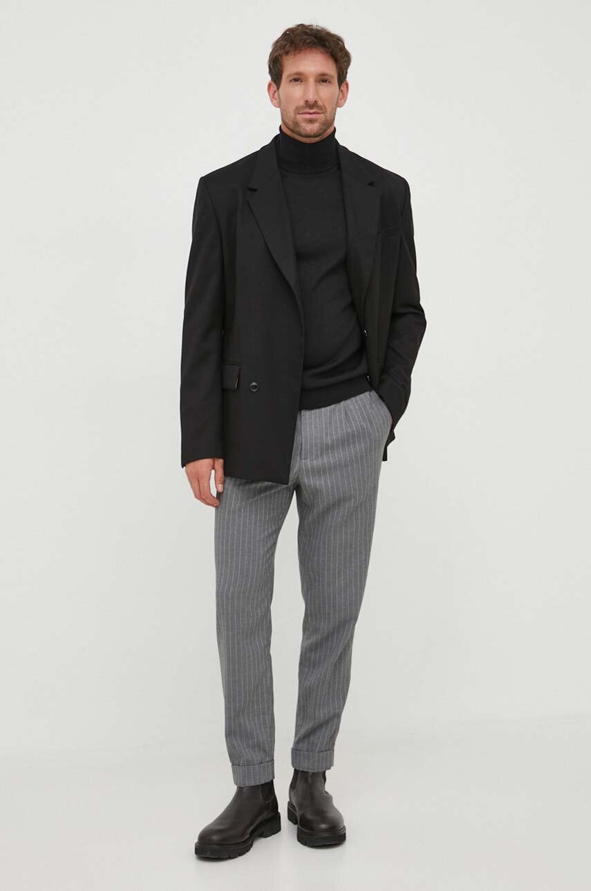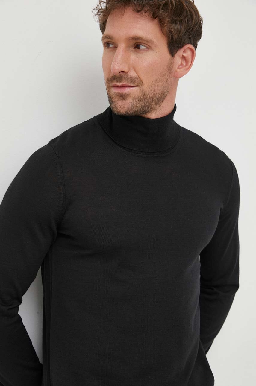 BOSS sweter wełniany męskie kolor czarny lekkie z golferm 50468262