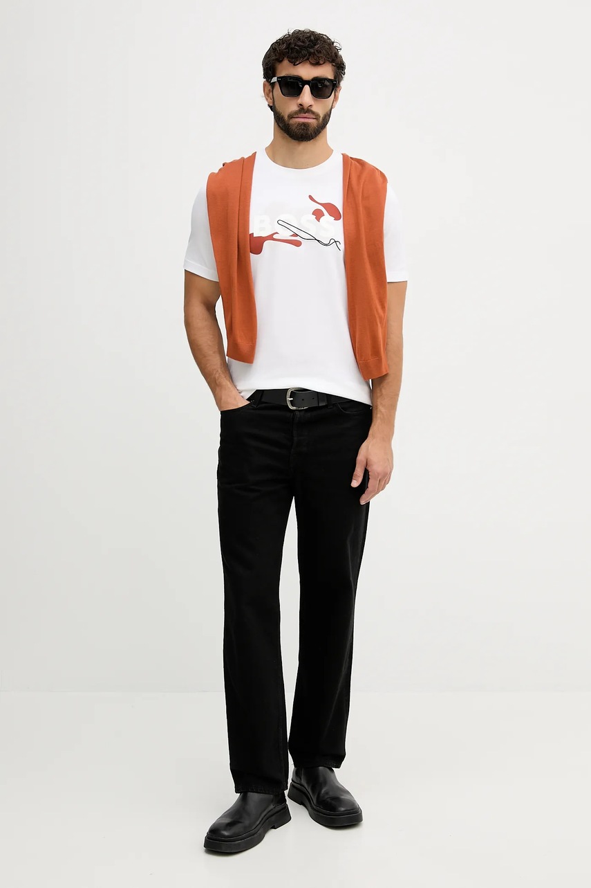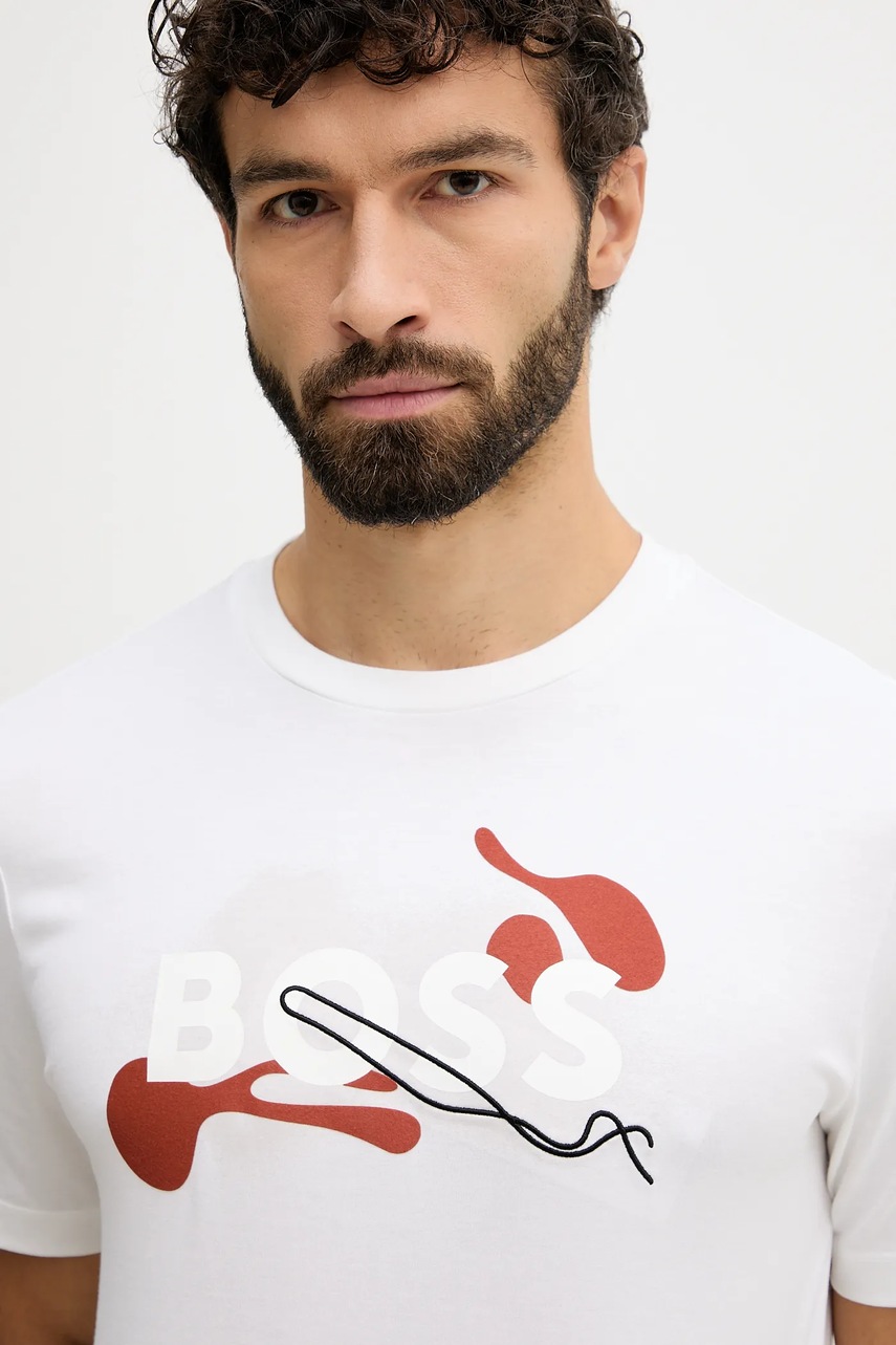 BOSS t-shirt bawełniany męski kolor biały z nadrukiem 50549282