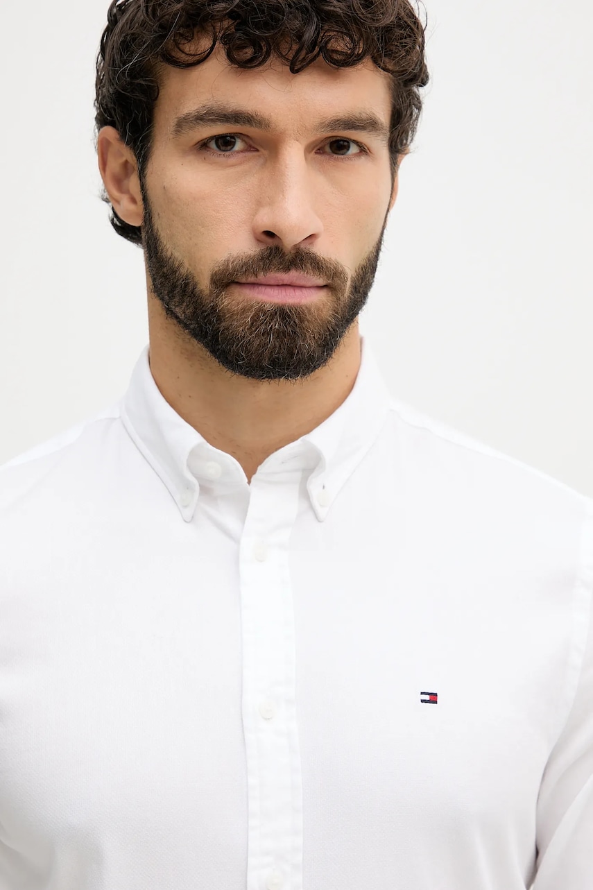 Tommy Hilfiger koszula męska kolor biały slim z kołnierzykiem button-down MW0MW40458
