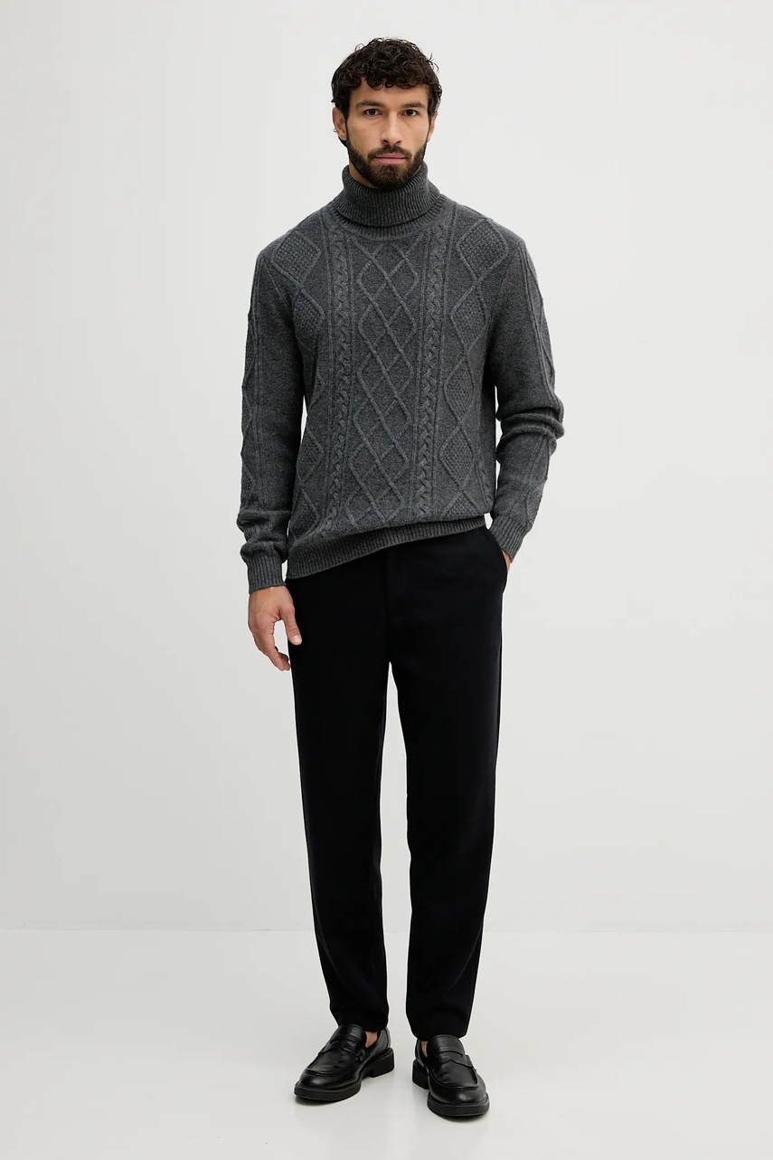 Tommy Hilfiger sweter wełniany męski kolor szary z golferm MW0MW40914