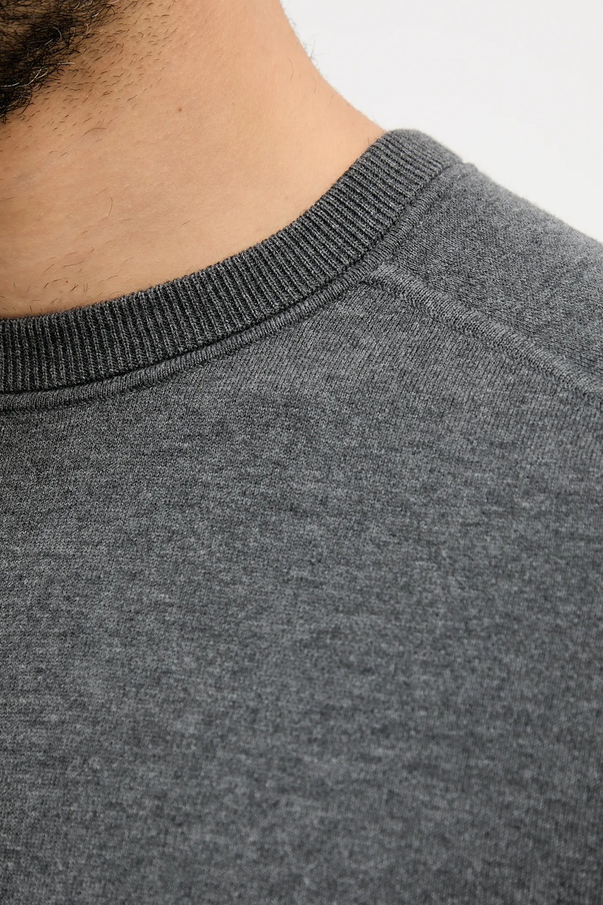 - Okrągły, prążkowany dekolt.