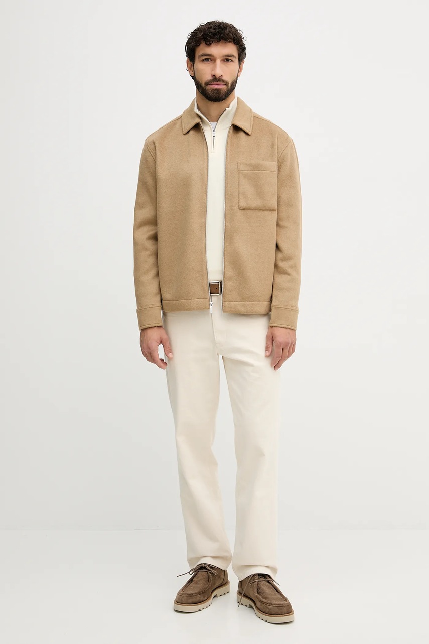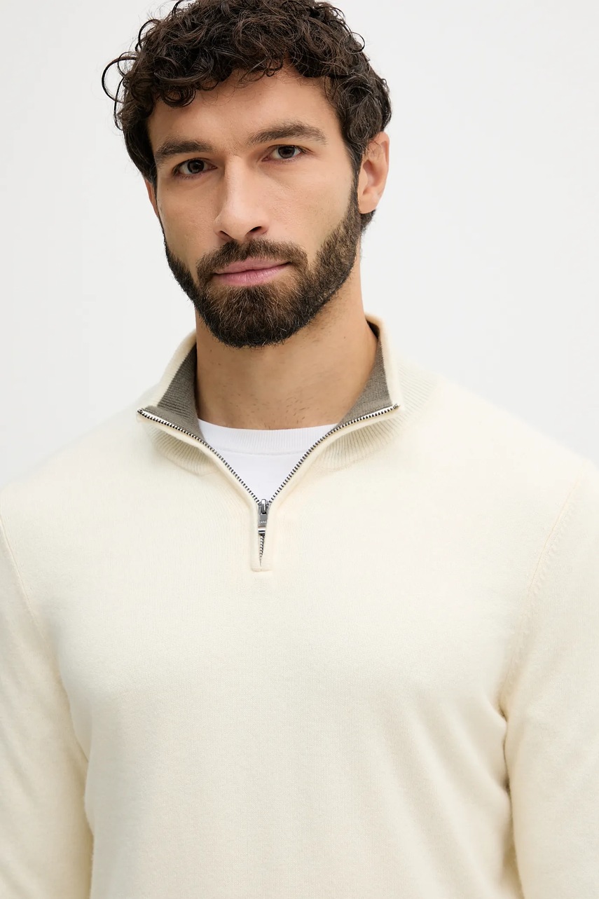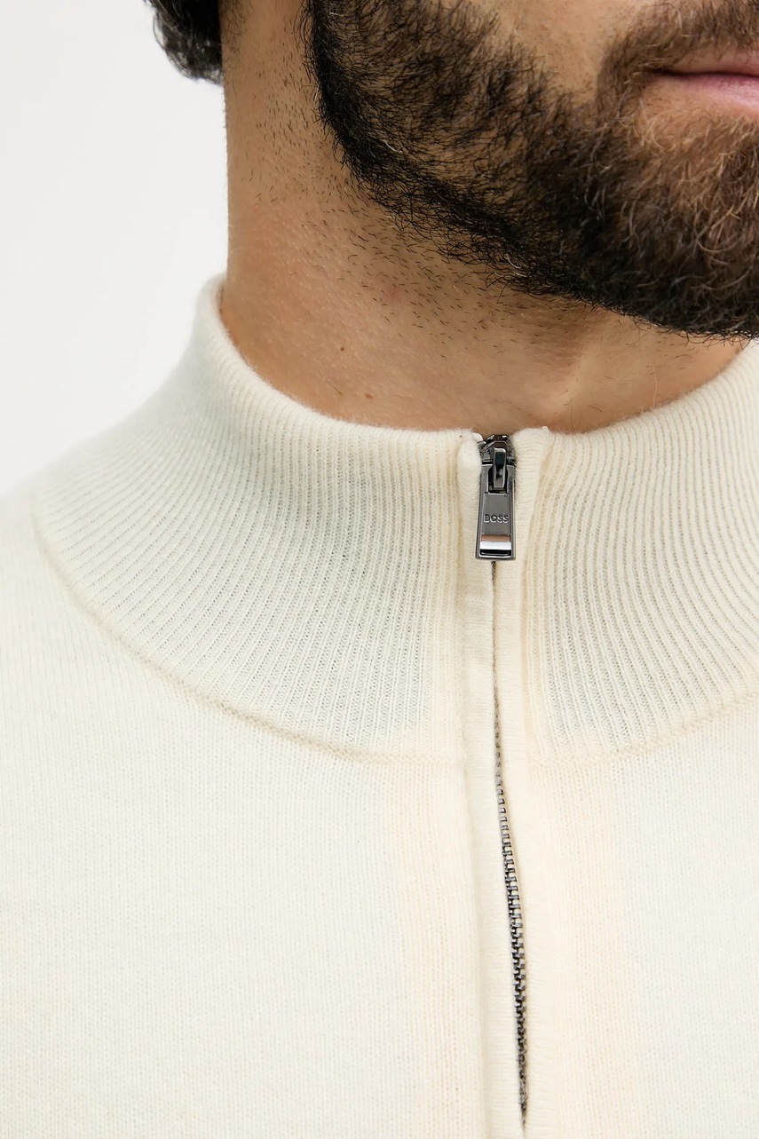 BOSS sweter wełniany męski kolor beżowy lekki 50549984