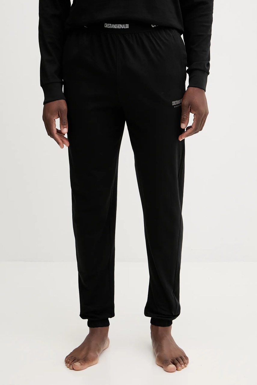 CR7 Cristiano Ronaldo piżama bawełniana męska kolor czarny z nadrukiem 8730.42.1047