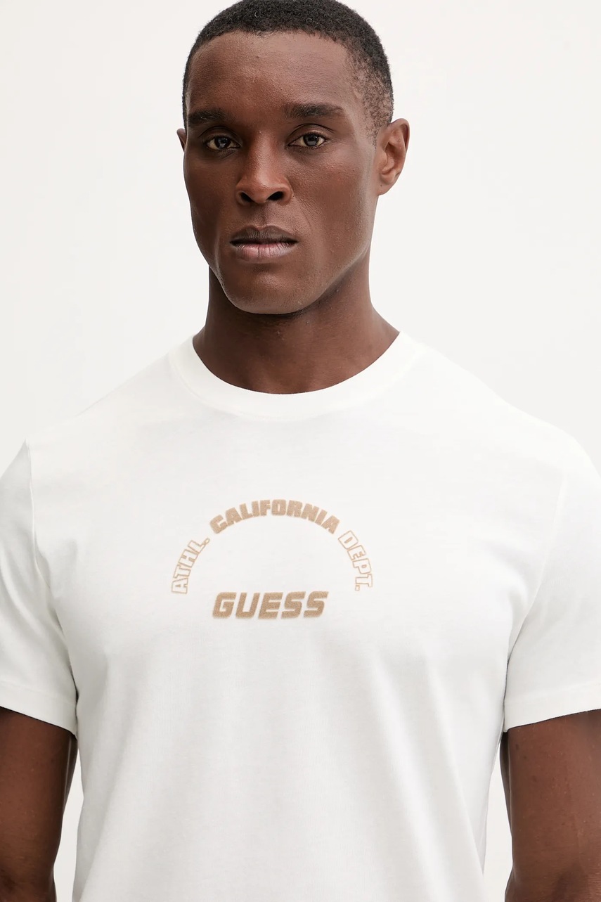 Guess t-shirt bawełniany SHIRO męski kolor beżowy z nadrukiem Z5BI05 I3Z14