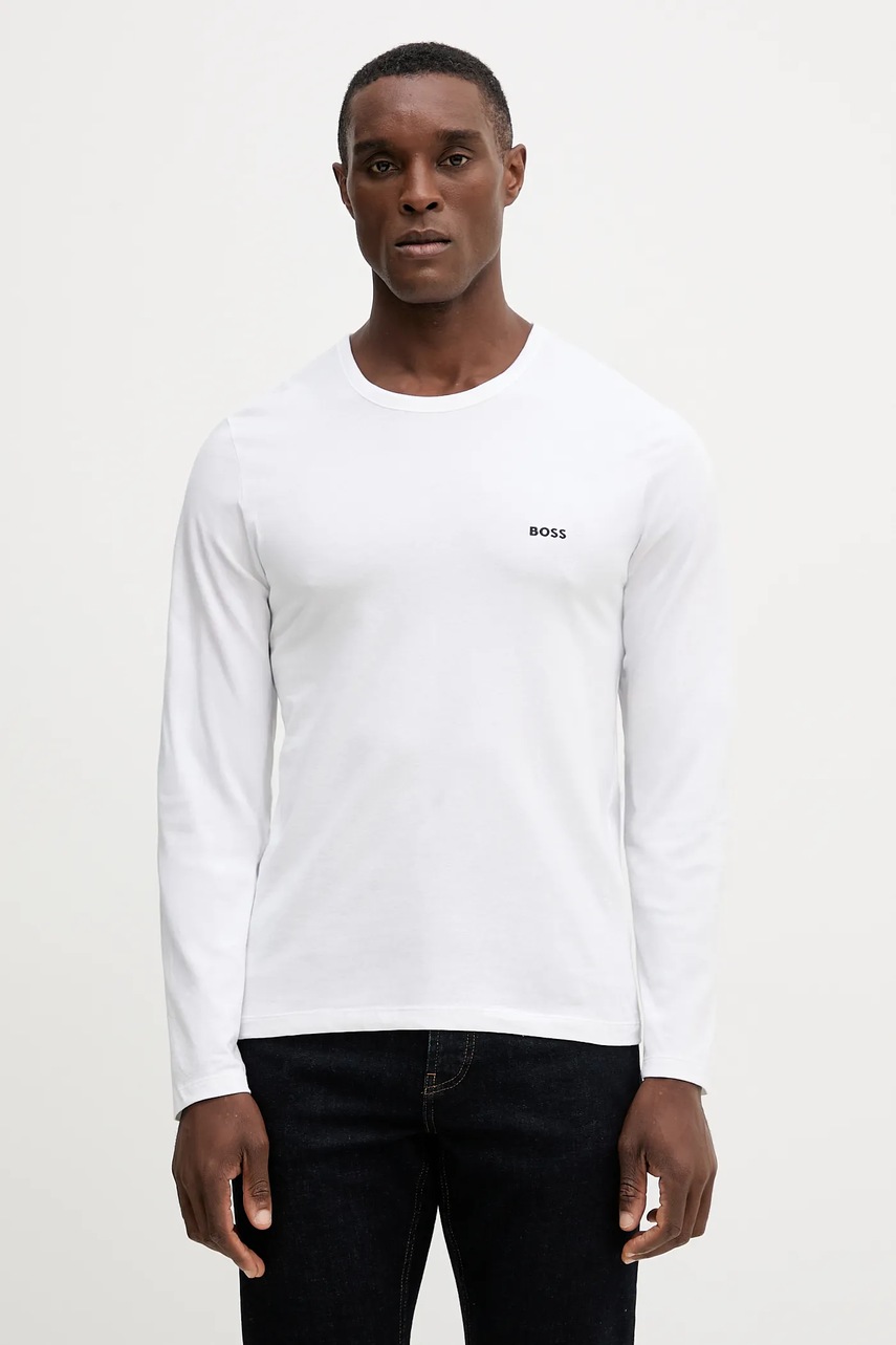 BOSS longsleeve bawełniany 3-pack kolor granatowy gładki 50492321
