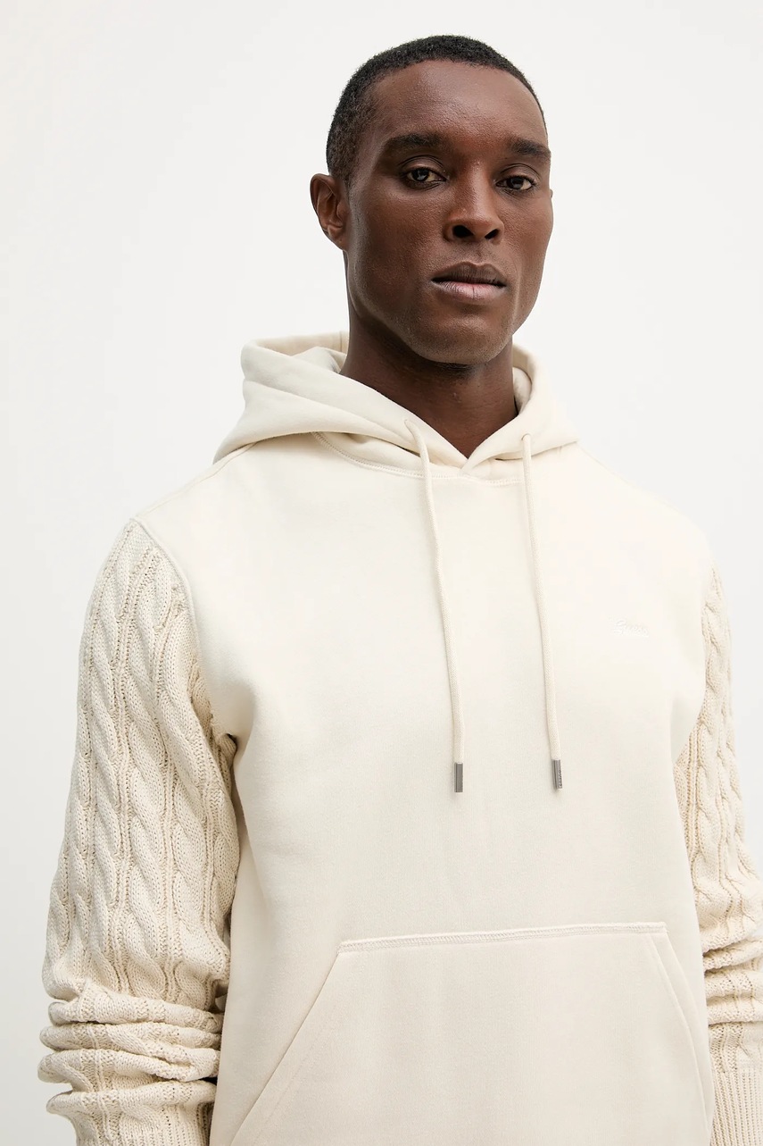 Guess bluza męska kolor beżowy z kapturem gładka M5BQ15 K0981