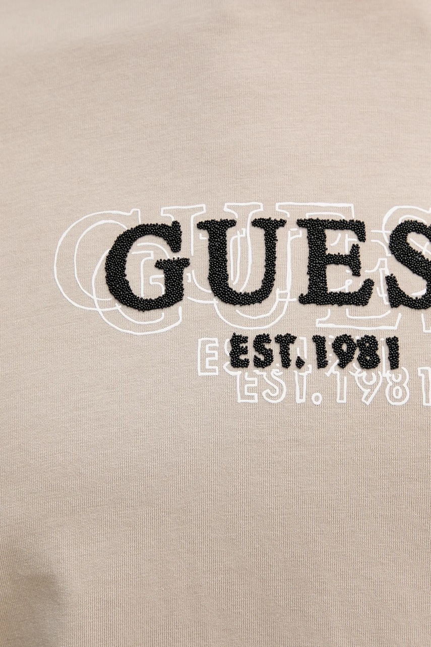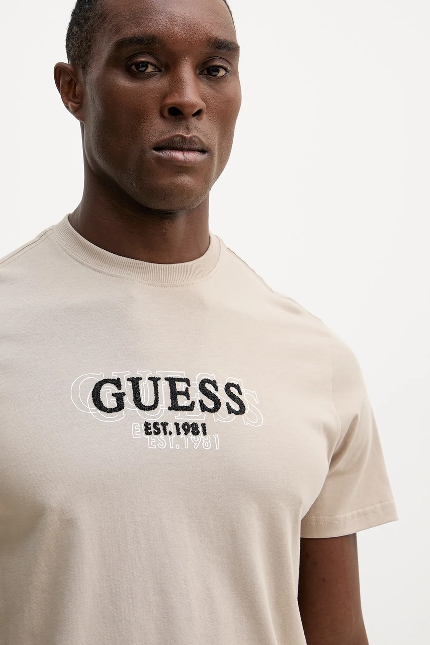 Guess t-shirt bawełniany męski kolor beżowy z nadrukiem M5BI05 I3Z14