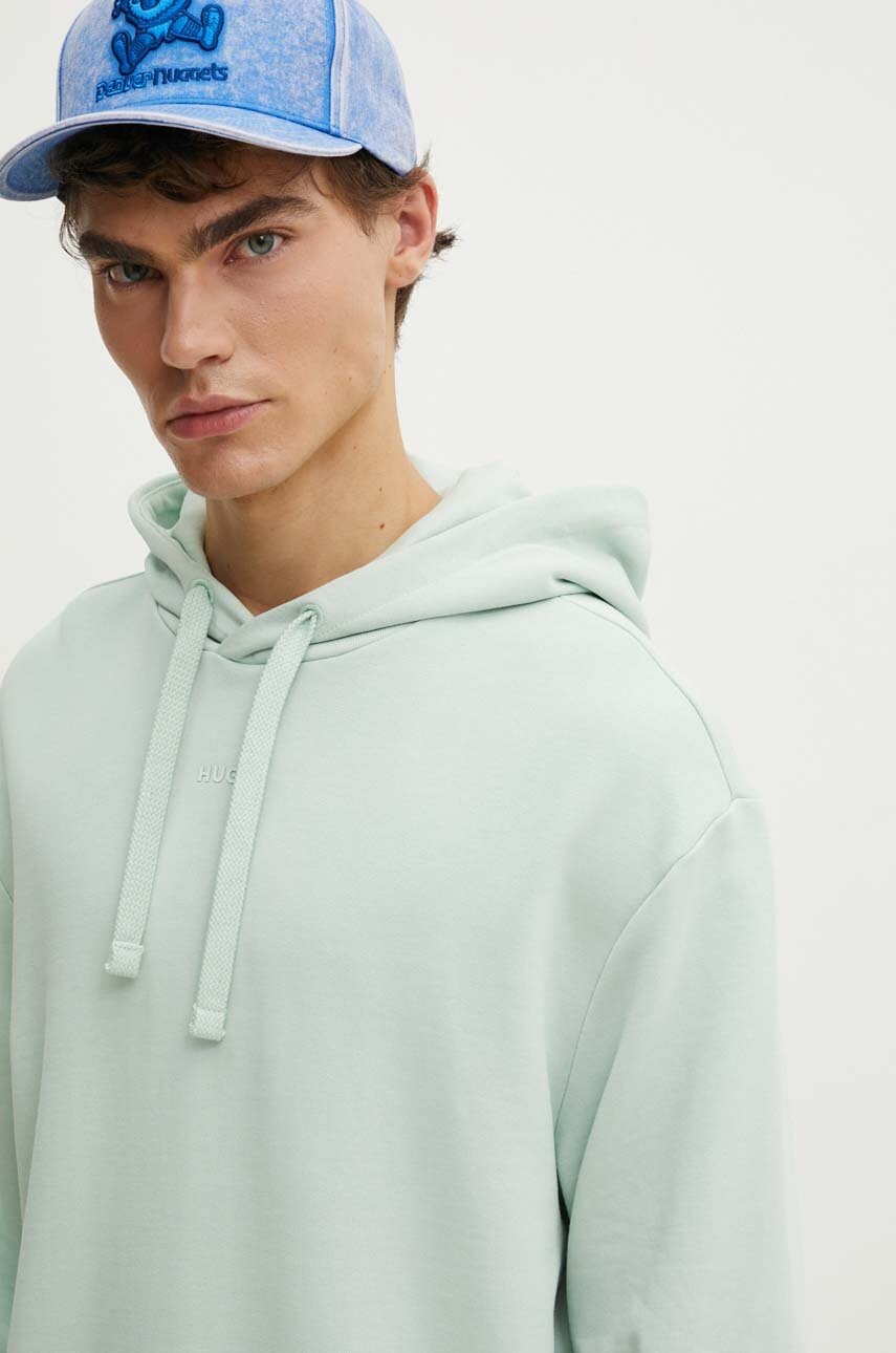HUGO bluza bawełniana męska kolor zielony z kapturem gładka 50486478
