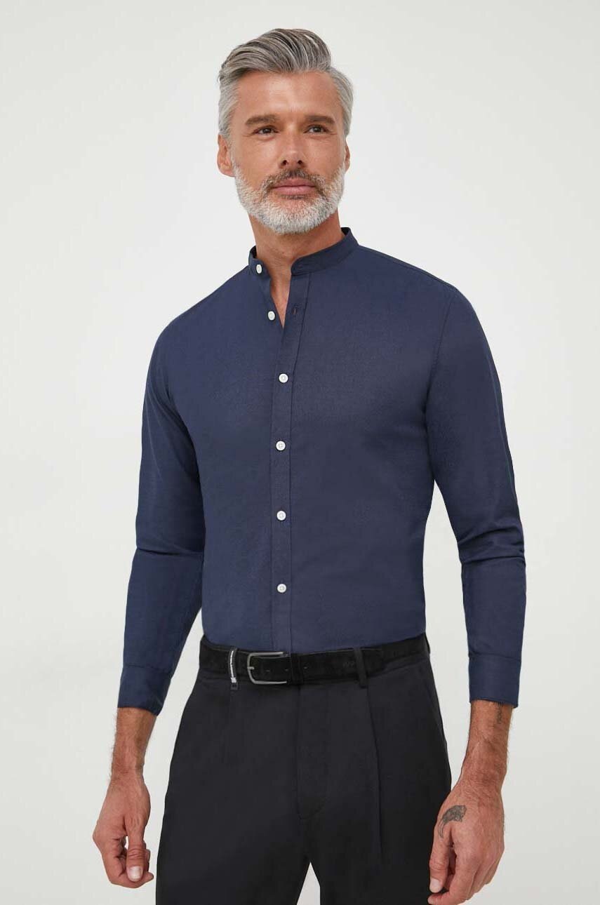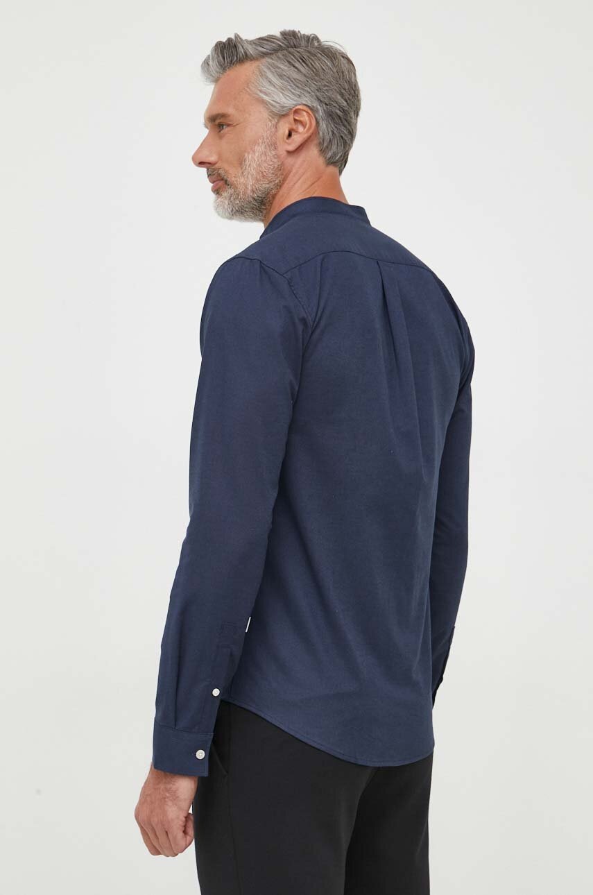 Lindbergh koszula męska kolor granatowy slim ze stójką