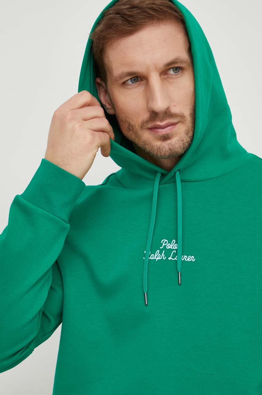 Polo Ralph Lauren bluza męska kolor zielony z kapturem z aplikacją