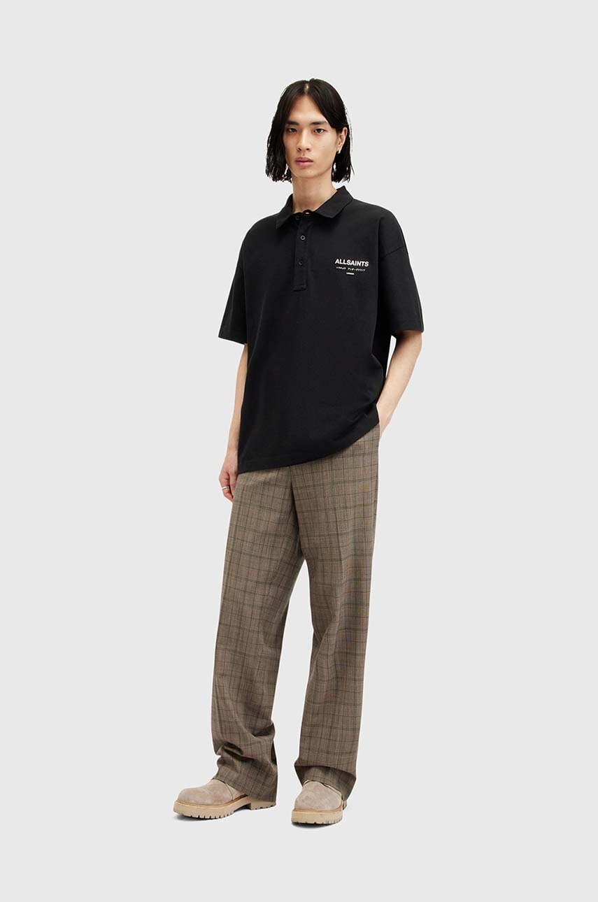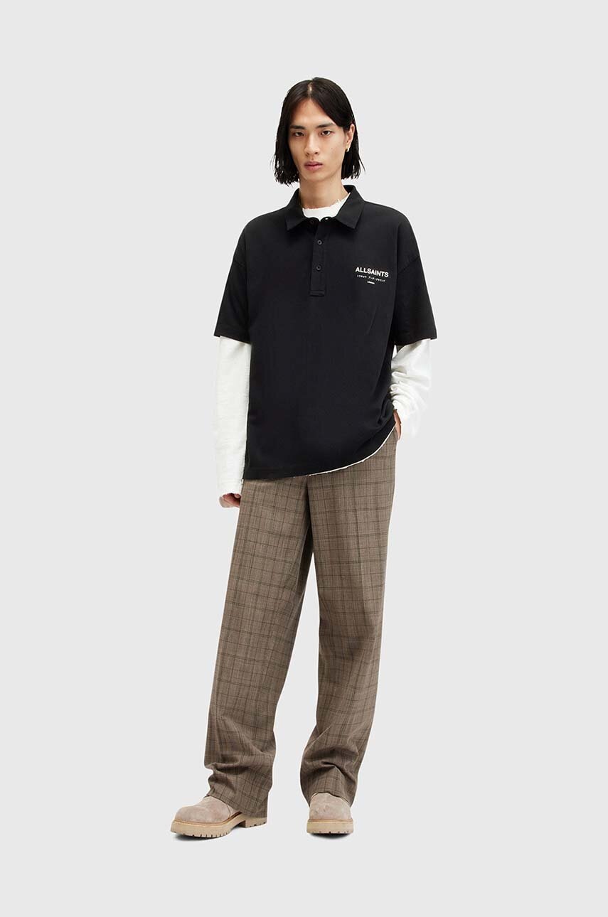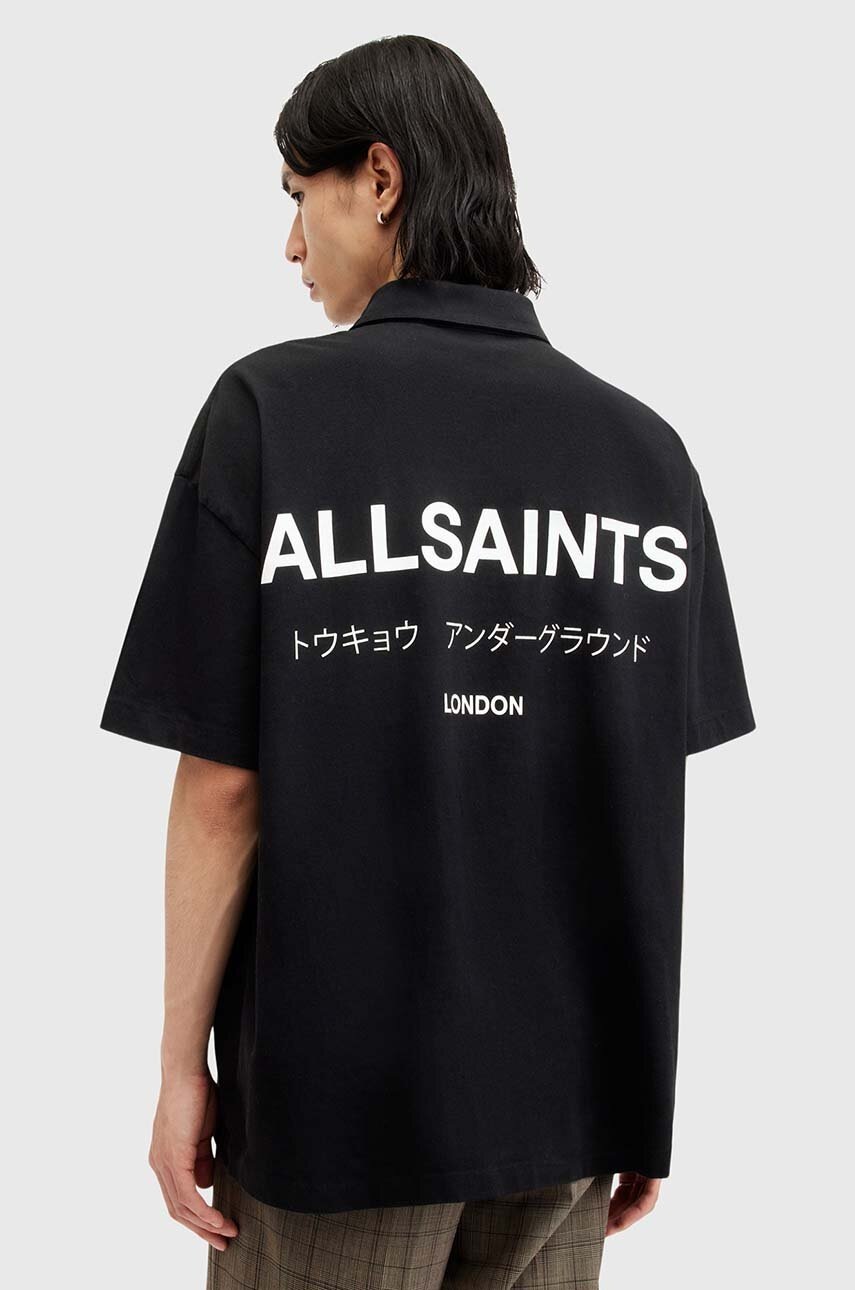 AllSaints polo bawełniane UNDERGROUND SS POLO kolor czarny z nadrukiem M047PA