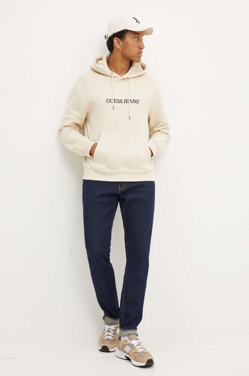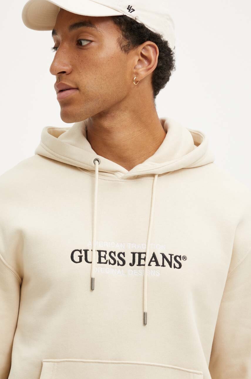 Guess Jeans bluza męska kolor beżowy z kapturem z aplikacją M4YQ23 K9V31