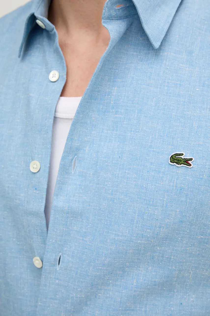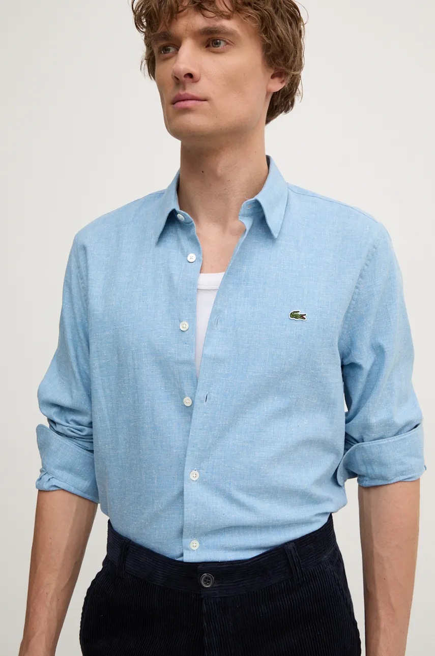 Lacoste koszula bawełniana męska kolor niebieski slim z kołnierzykiem klasycznym CH2573