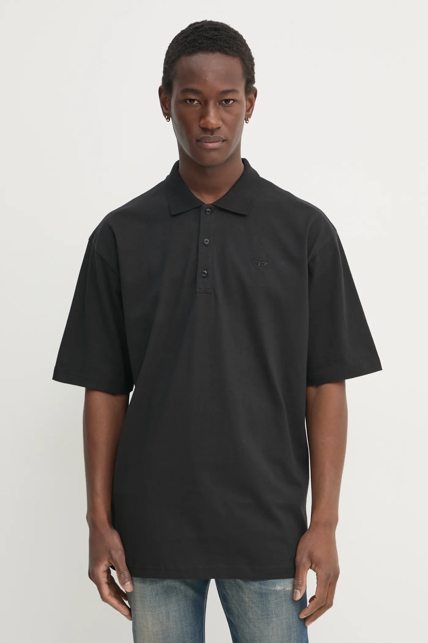 Diesel polo bawełniane kolor czarny gładki A10763.0HGAM