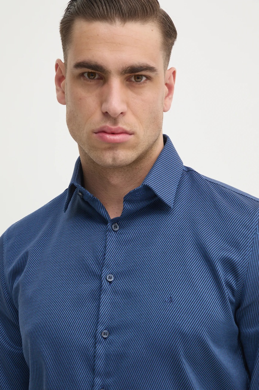 Calvin Klein koszula męska kolor granatowy slim z kołnierzykiem włoskim K10K114316