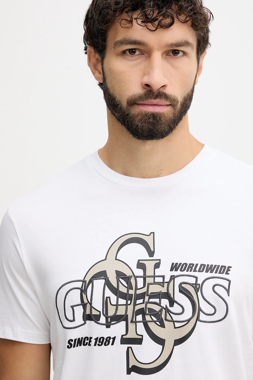 Guess t-shirt bawełniany męski kolor biały z nadrukiem M5BI72 I3Z14