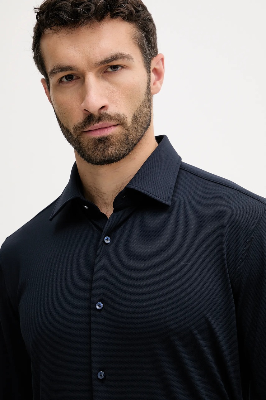 BOSS koszula męska kolor granatowy slim z kołnierzykiem włoskim 50545163
