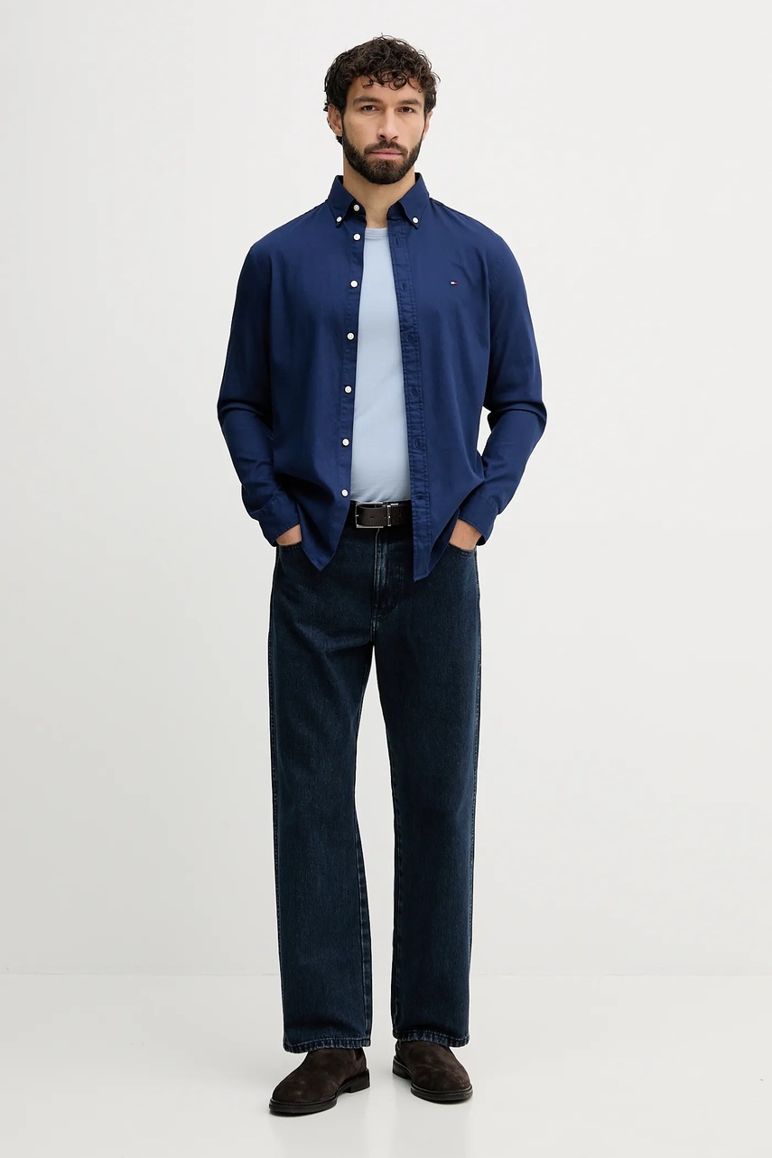 Tommy Hilfiger koszula męska kolor granatowy slim z kołnierzykiem button-down MW0MW40458