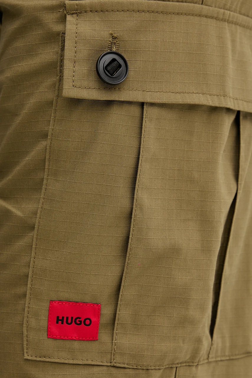HUGO spodnie bawełniane kolor zielony proste 50493865