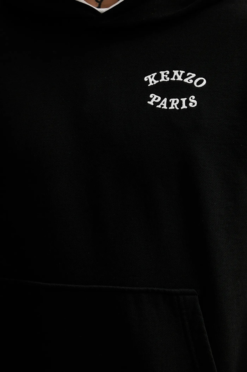 Kenzo bluza bawełniana męska kolor czarny z kapturem gładka FF55SW2724MC.99J