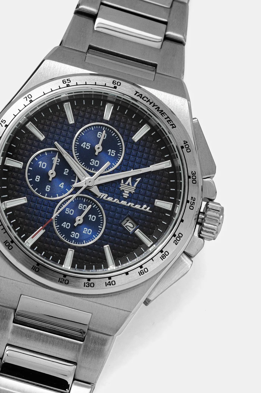 - Tachometr. Bezel zegarka oznakowano specjalną skalą, która w połączeniu z sekundnikiem umożliwia obliczania średniej prędkości poruszania się.