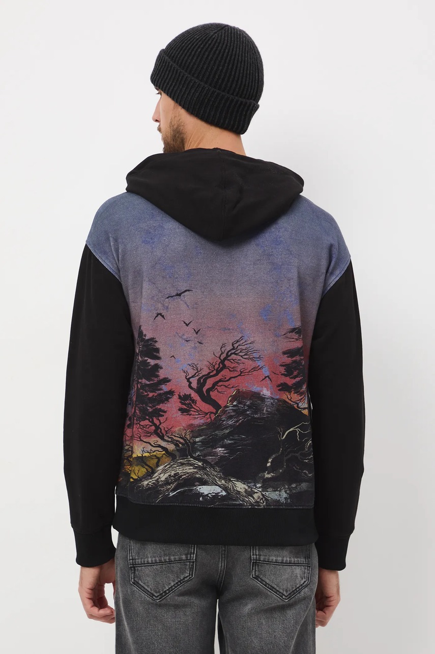 Medicine bluza bawełniana męska kolor czarny z kapturem wzorzysta