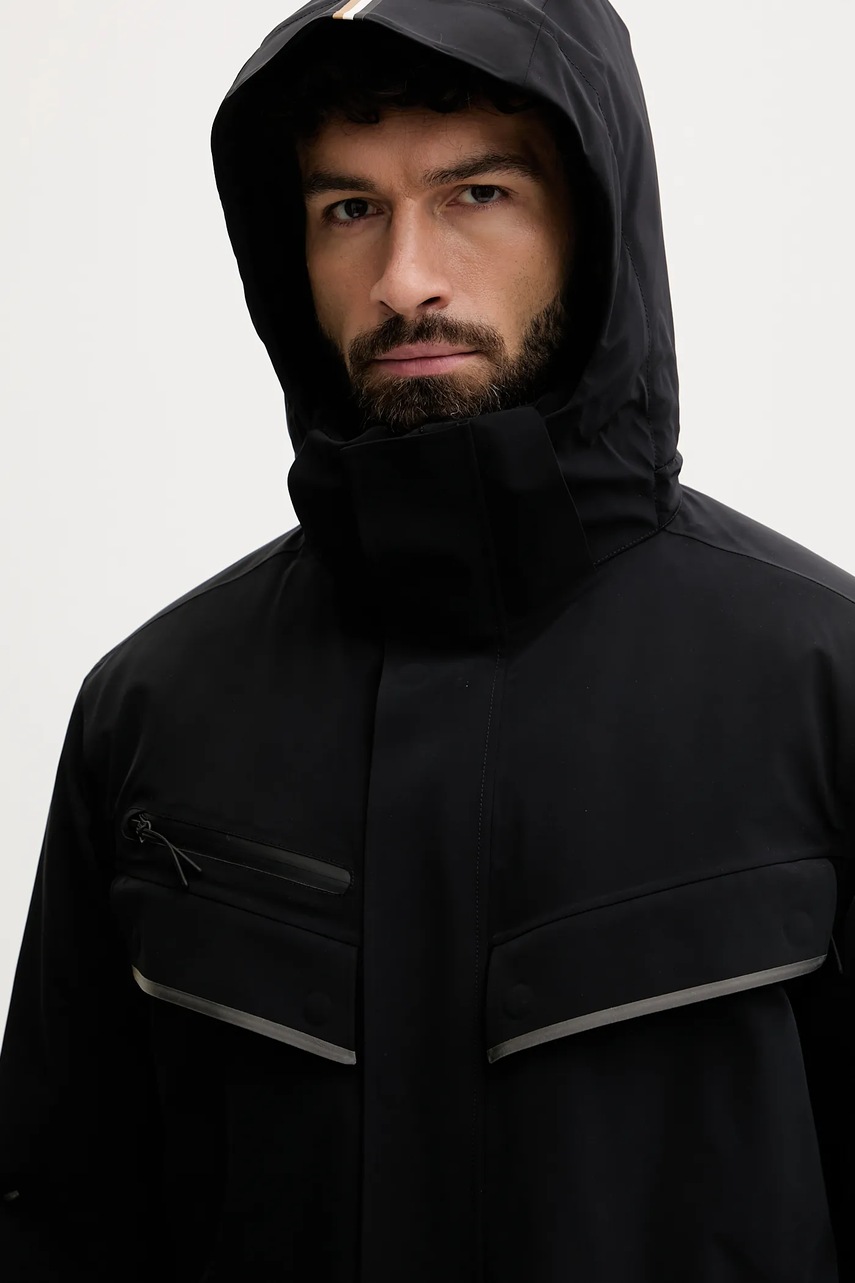 - Mocno zabudowany, podwyższony kołnierz z osłoną podbródka zapewnia ochronę przed zimnem, wiatrem i opadami śniegu lub deszczu.