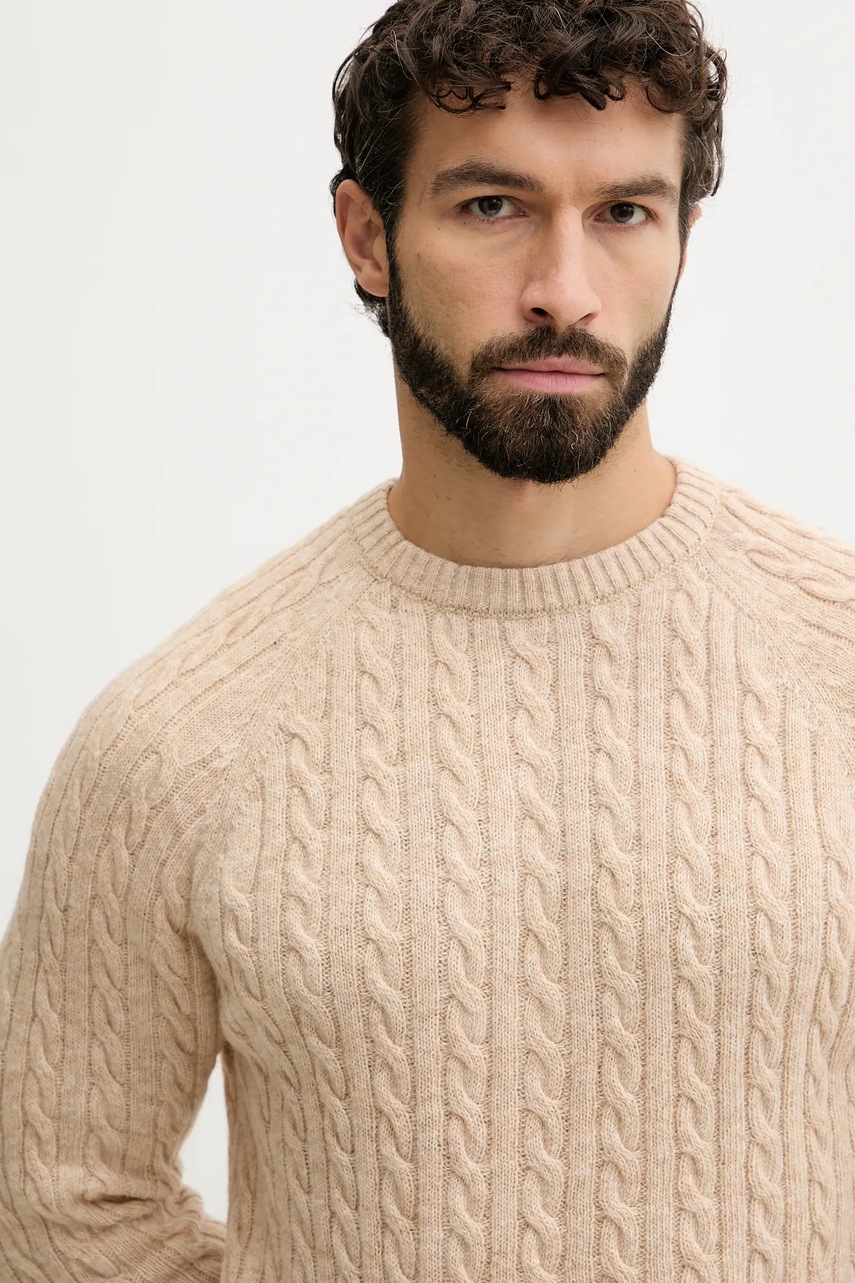 Lindbergh sweter z dodatkiem wełny męski kolor beżowy 30.800227