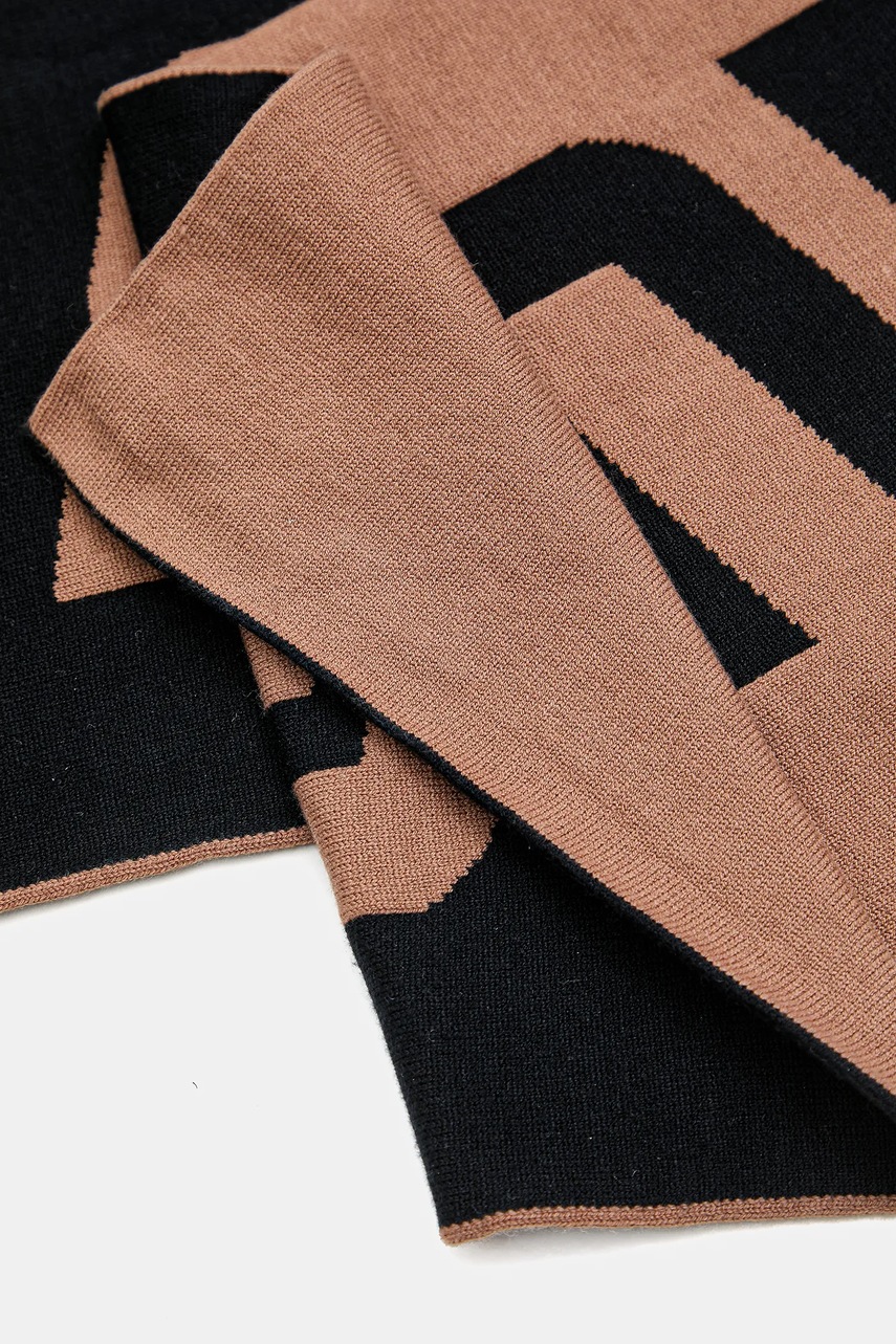 BOSS szal z domieszką wełny męski kolor czarny gładki 50547659