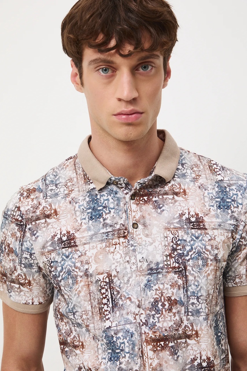 Medicine polo męskie kolor beżowy wzorzyste