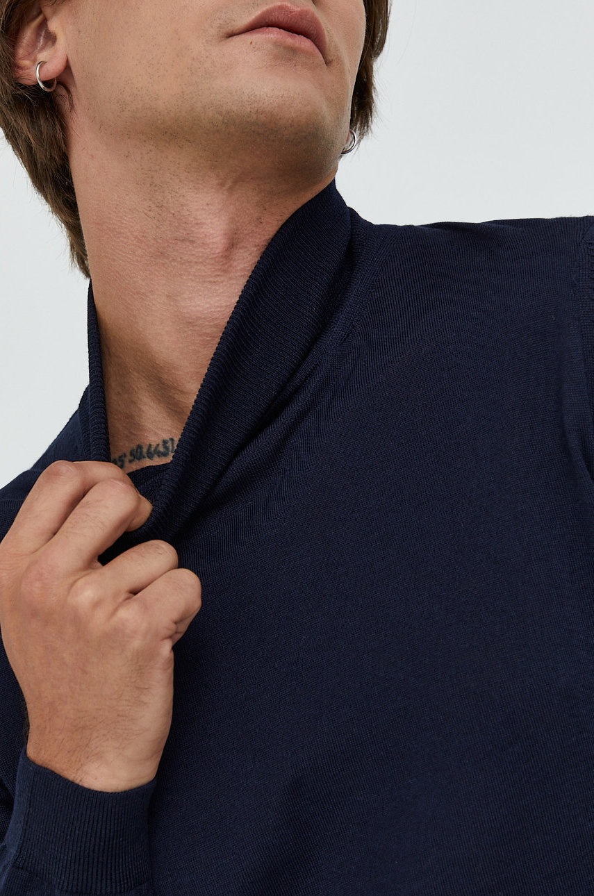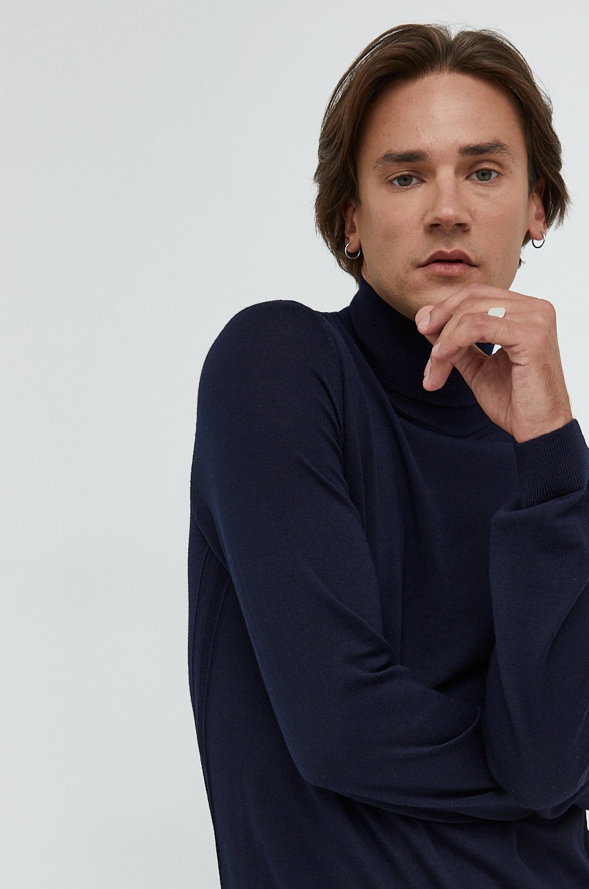 BOSS sweter wełniany męskie kolor granatowy lekkie z golferm 50468262
