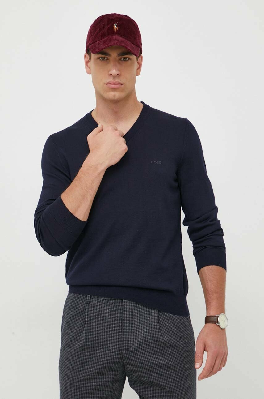 BOSS sweter wełniany męski kolor niebieski lekki