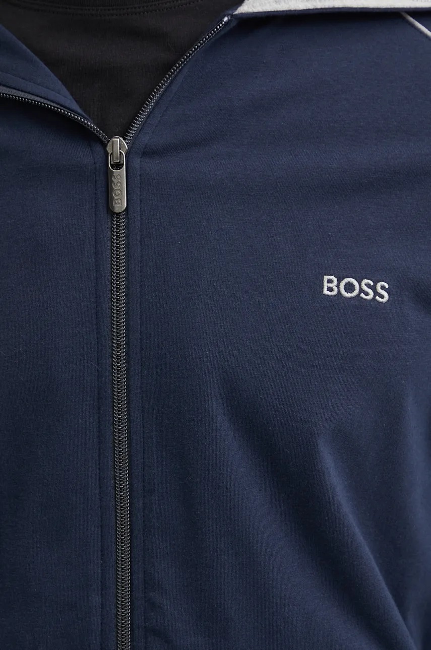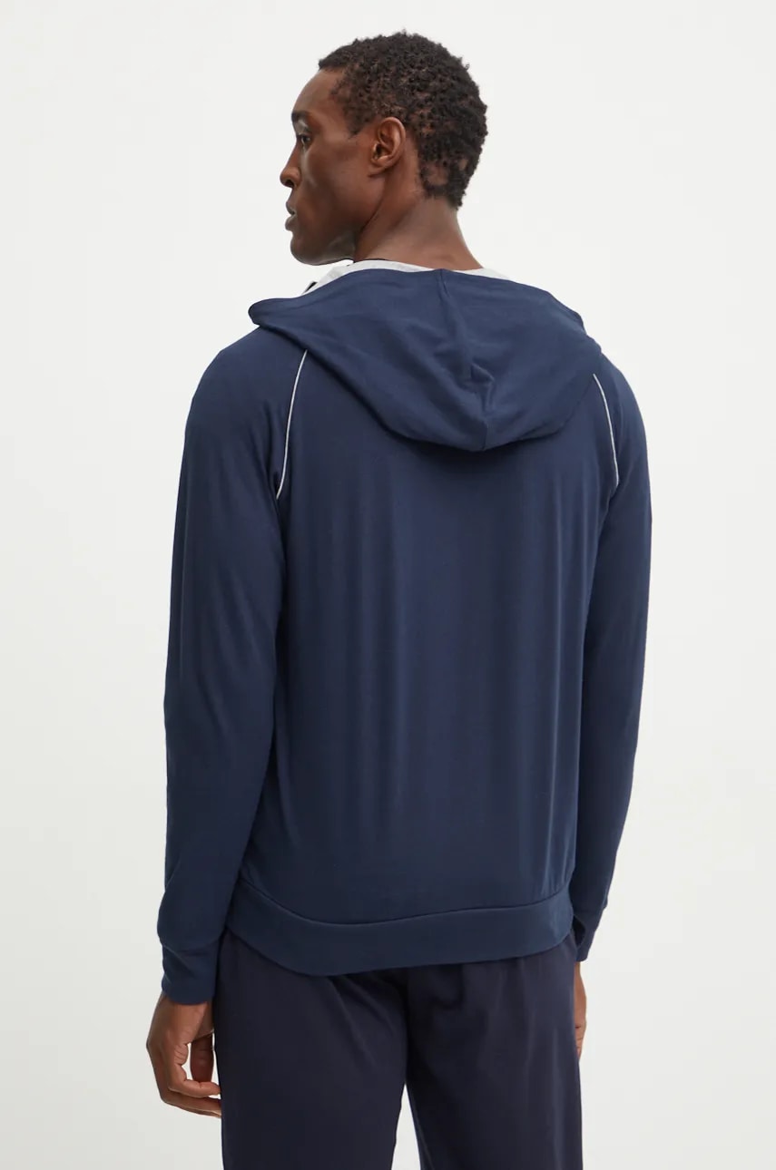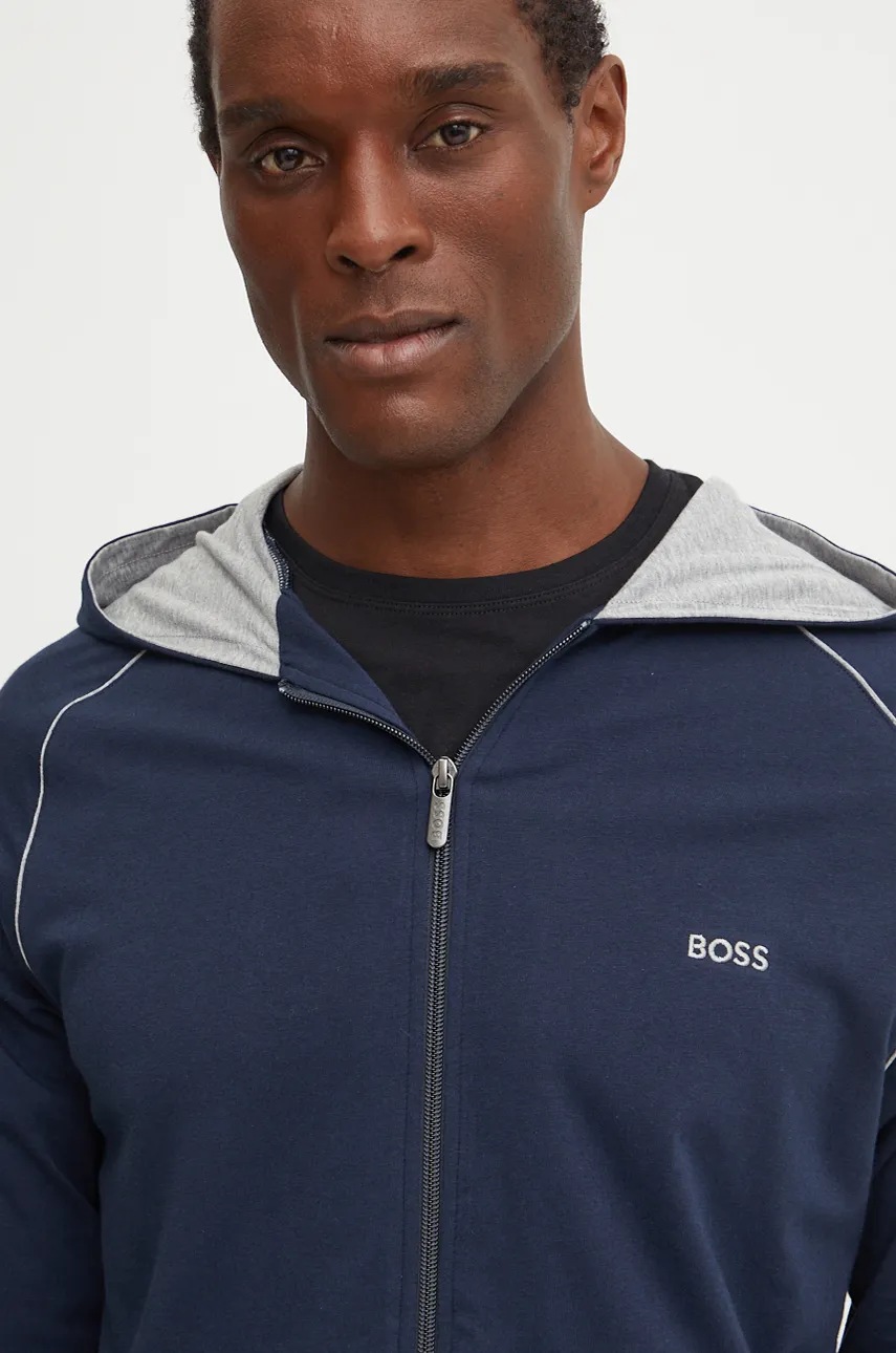BOSS bluza lounge kolor niebieski z kapturem gładka 50515392