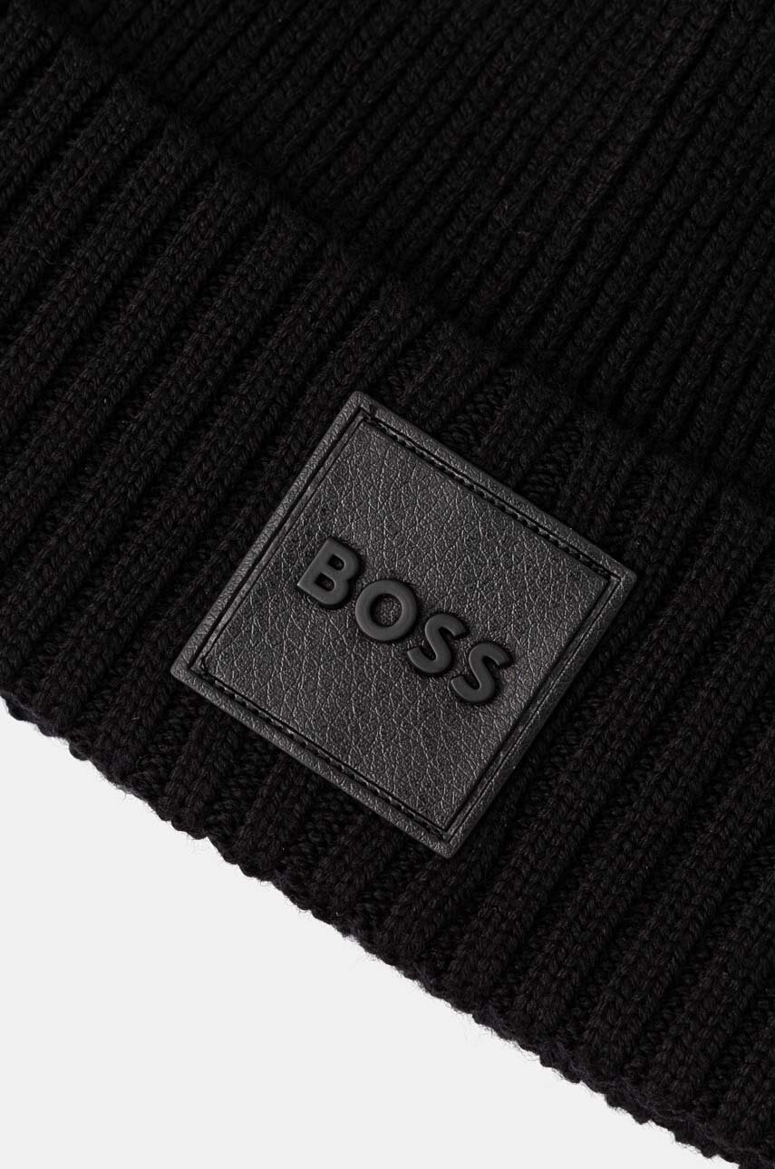 BOSS czapka wełniana kolor czarny z cienkiej dzianiny wełniana 50522426