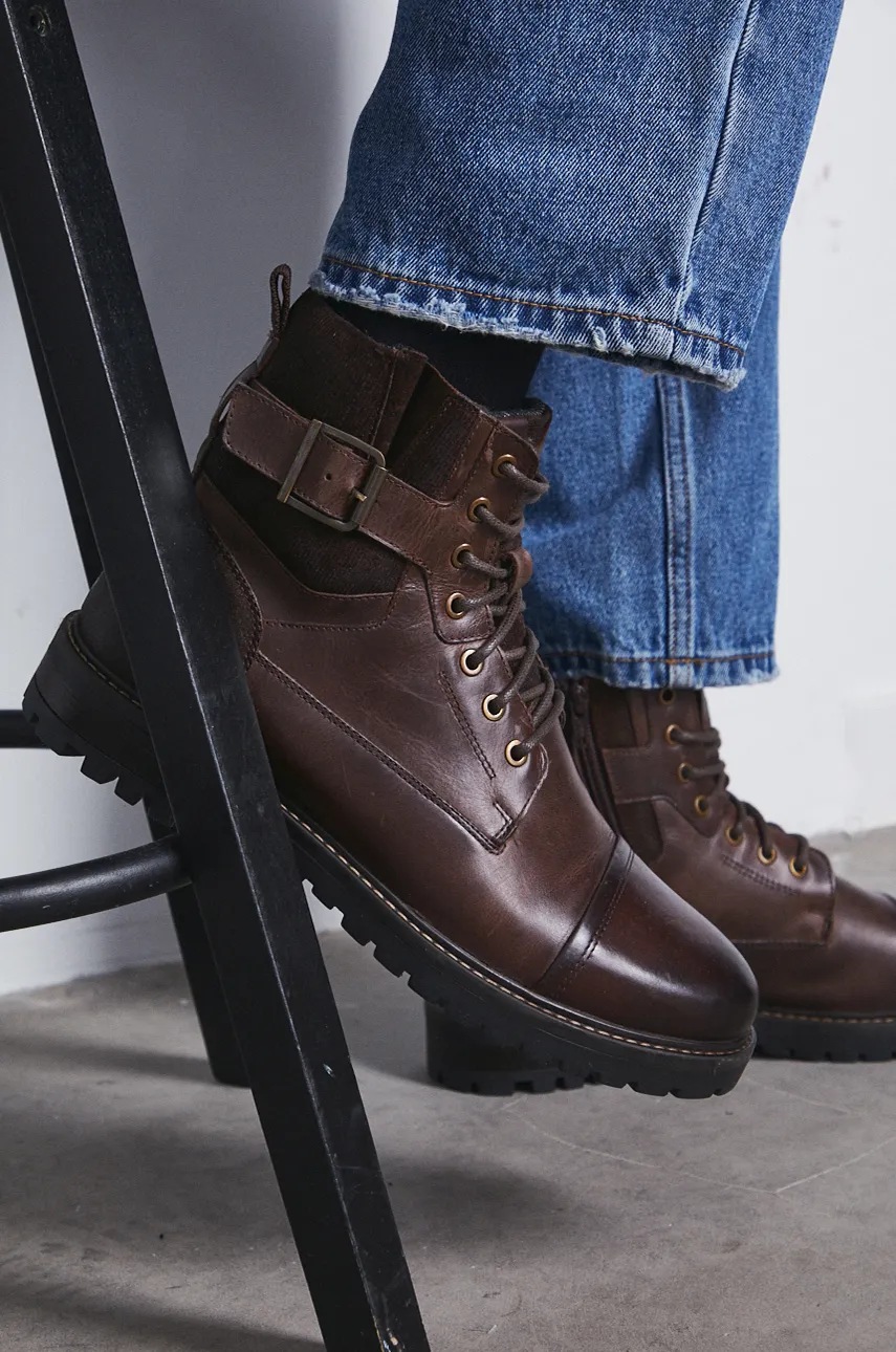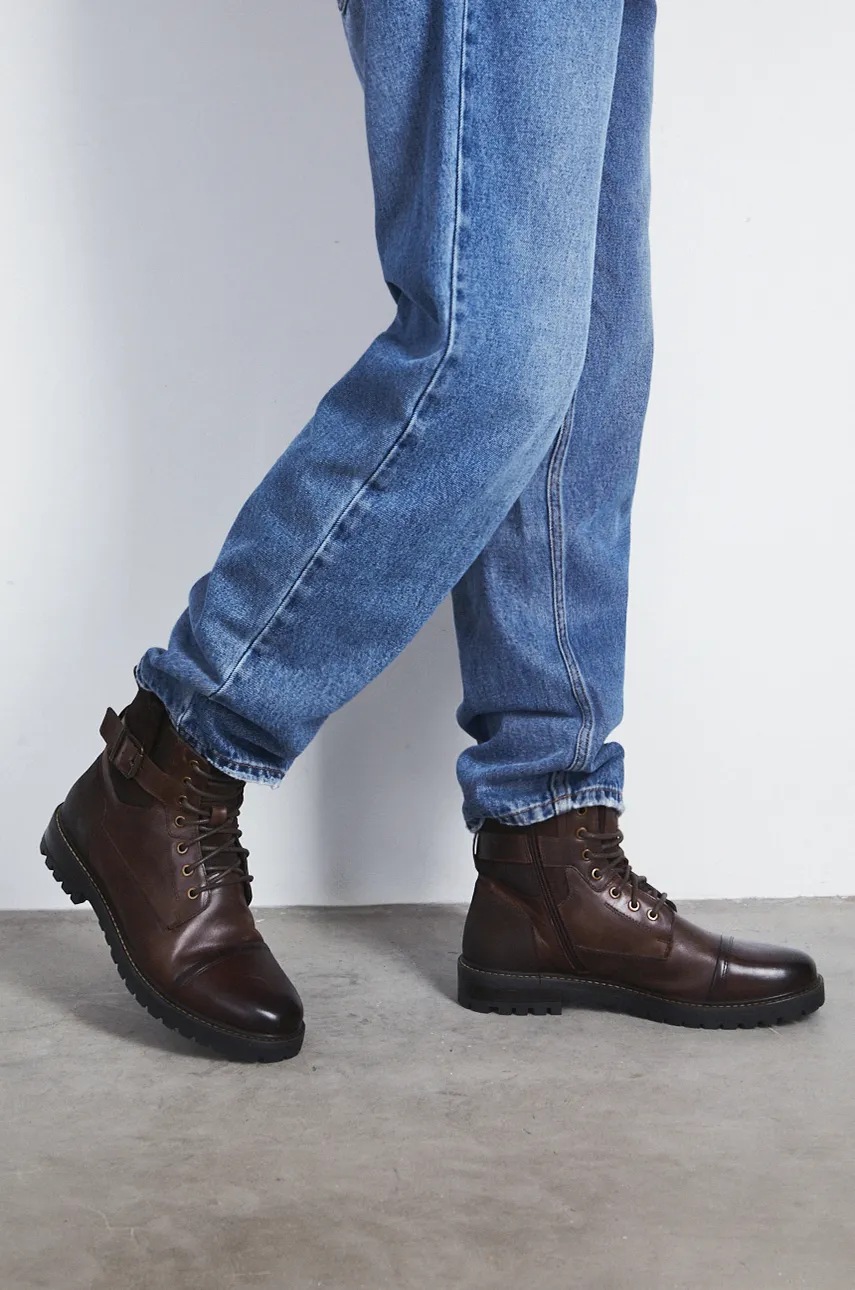 - Sznurowany model z bocznym zapięciem na klamrę.