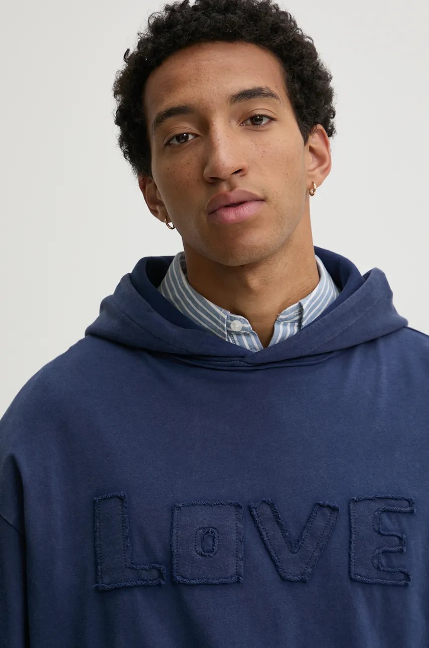 Desigual bluza bawełniana NUEVOMEXICO męska kolor granatowy z kapturem gładka 24WMSK19