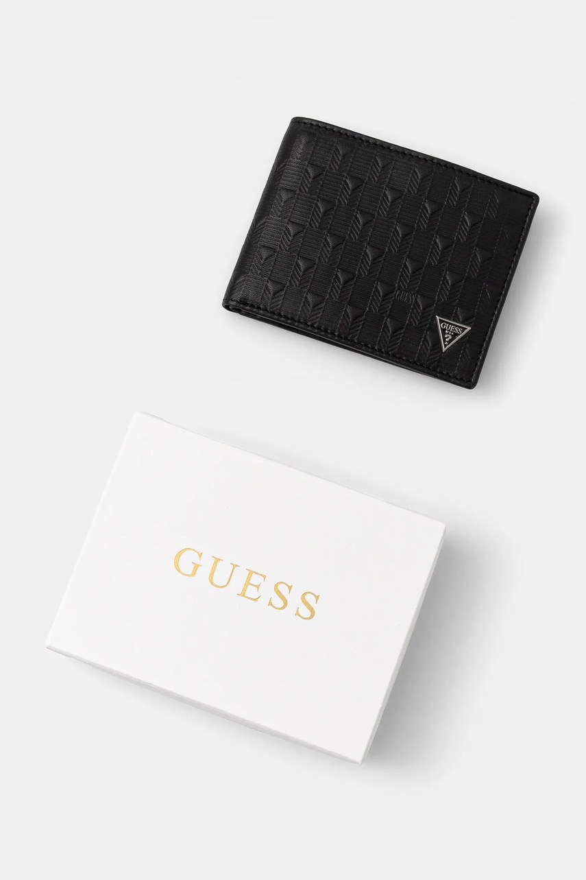 Guess portfel skórzany MADRID męski kolor czarny SMMADL LEA20