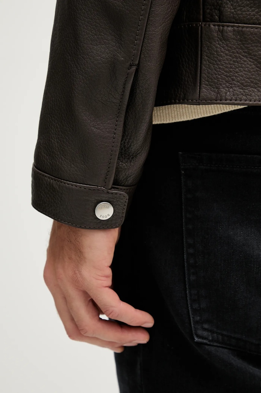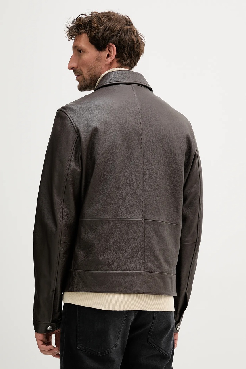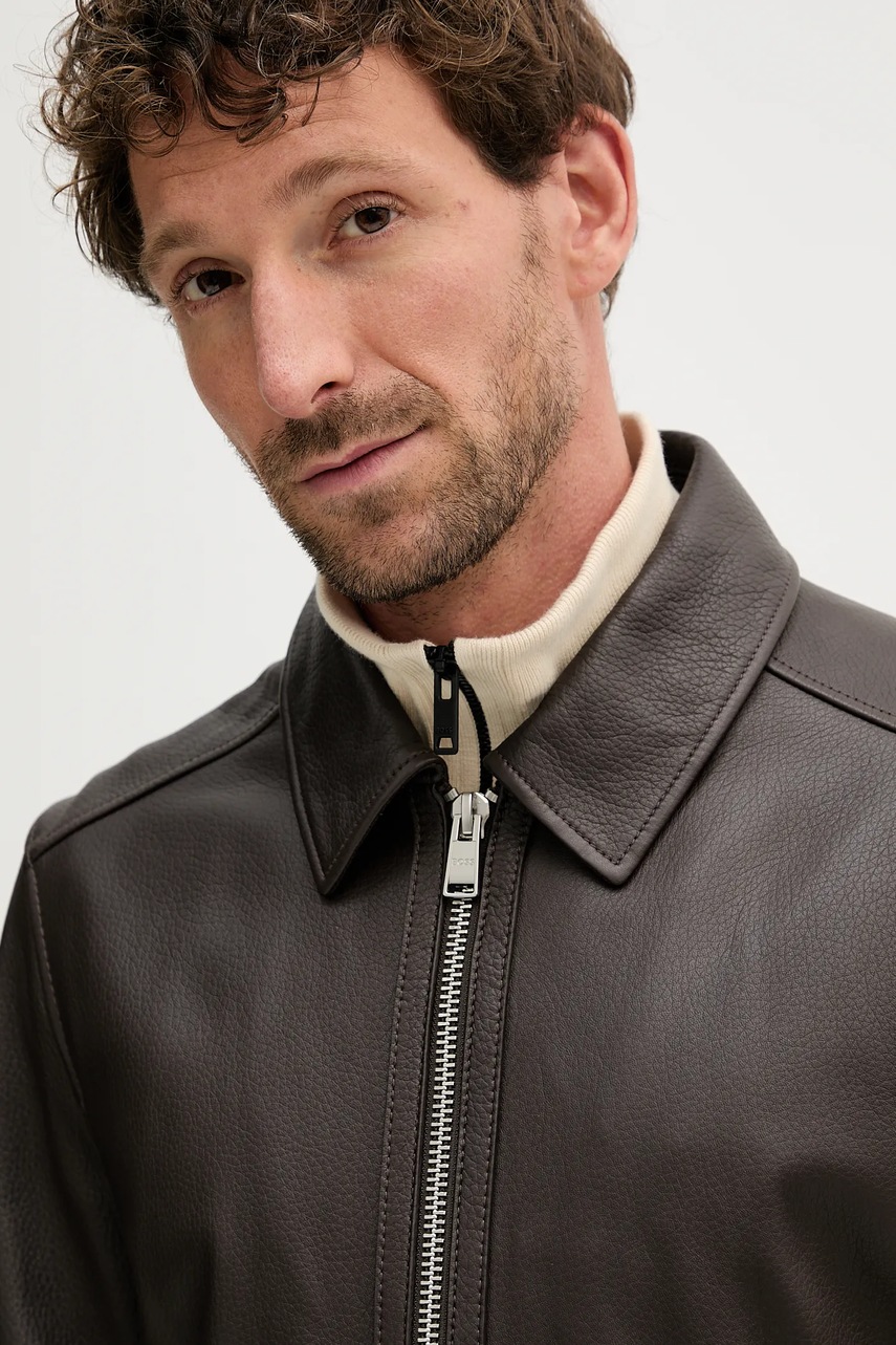 BOSS kurtka skórzana kolor brązowy przejściowa 50543214