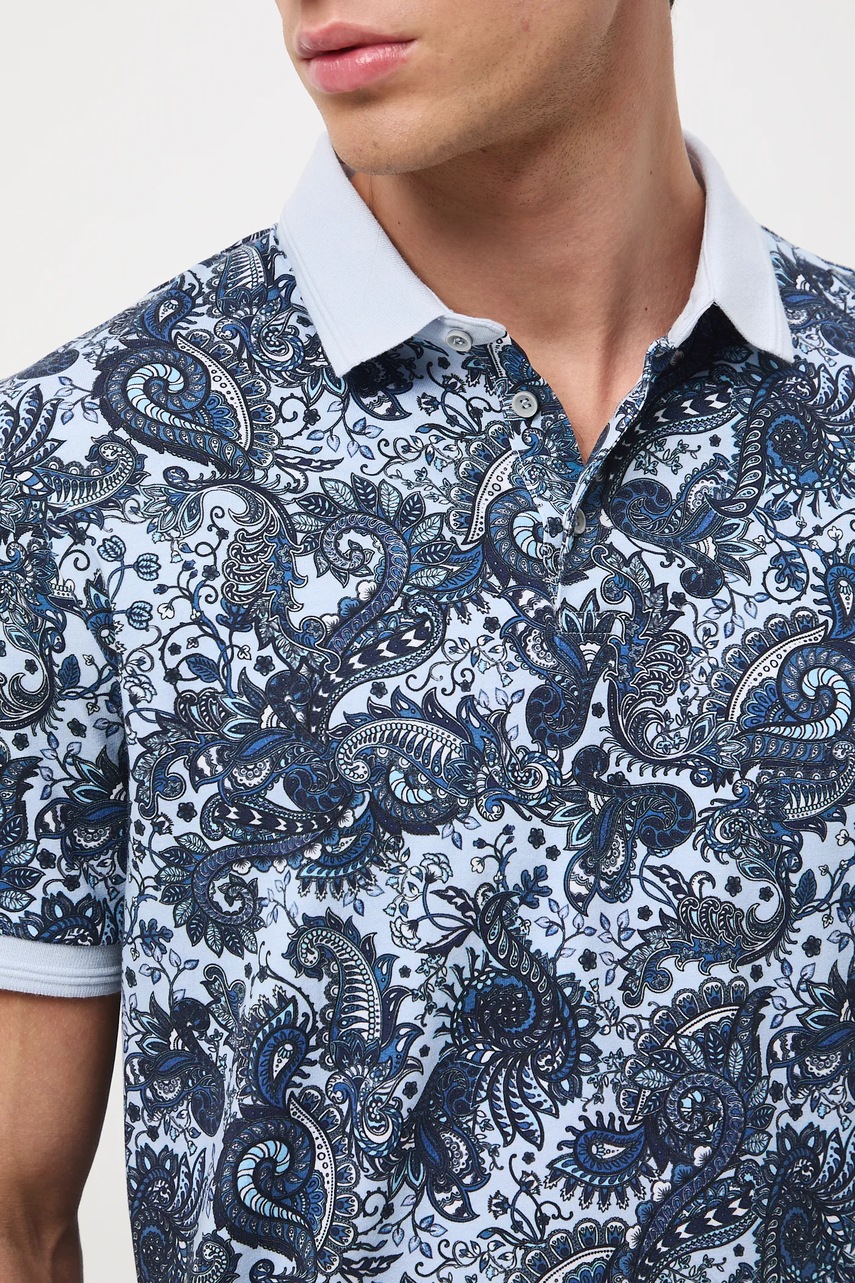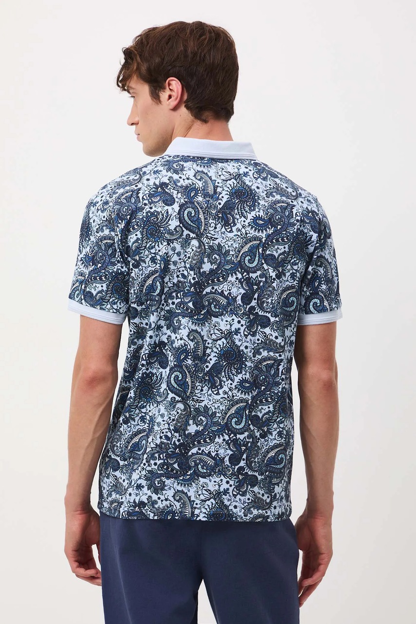 Medicine polo bawełniane męskie kolor niebieski wzorzysty
