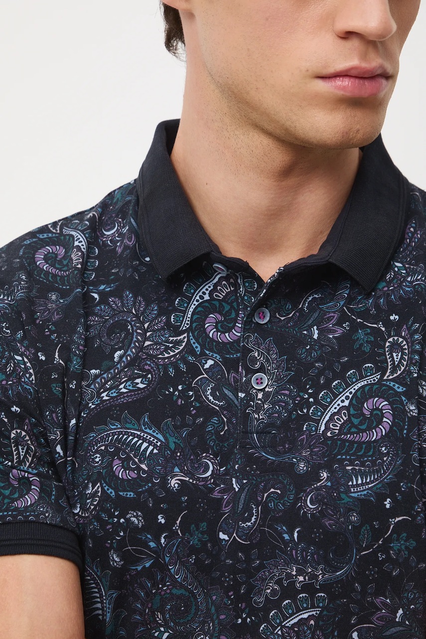 Medicine polo bawełniane męskie kolor czarny wzorzysty