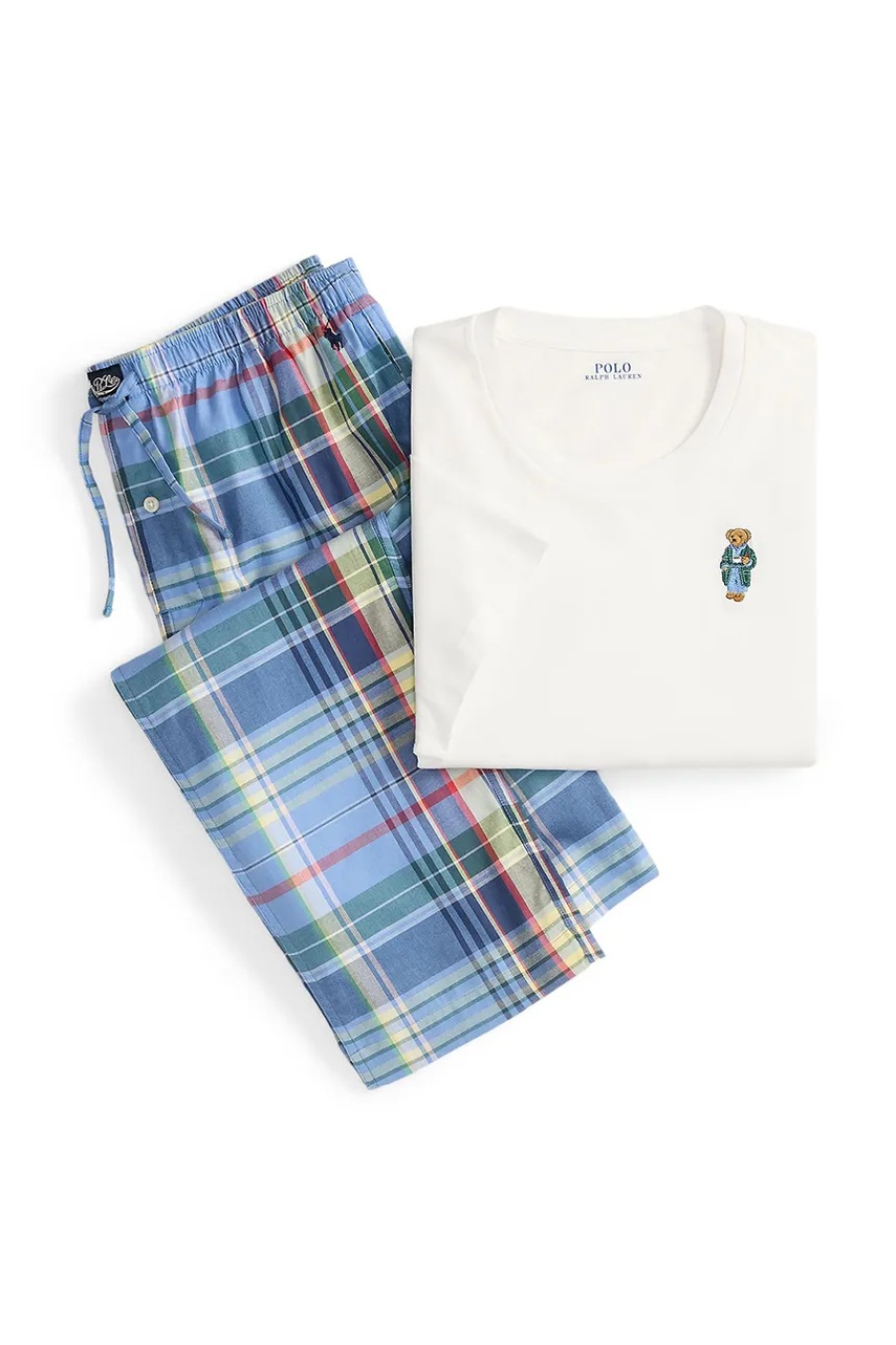 Polo Ralph Lauren piżama bawełniana kolor niebieski wzorzysta 714931645