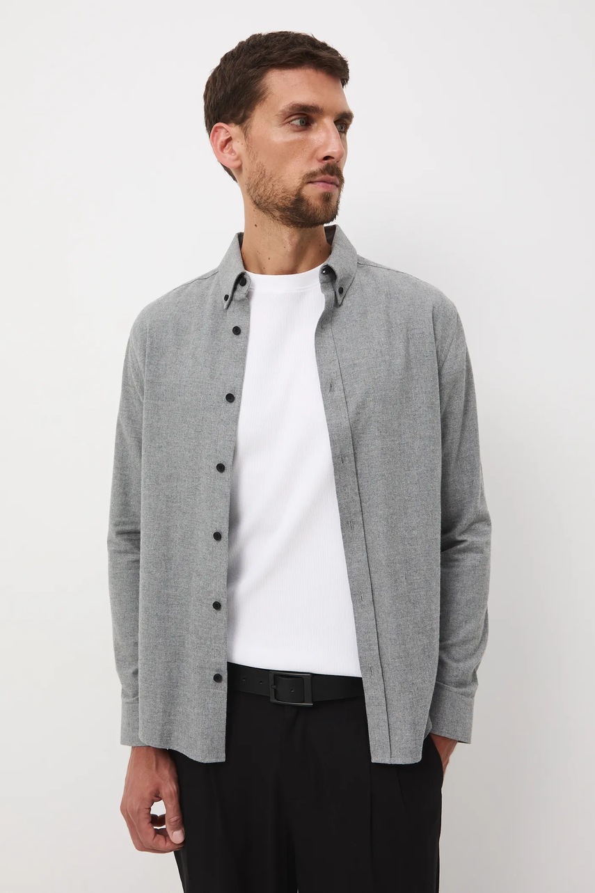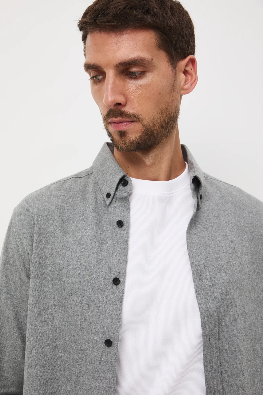Medicine koszula męska kolor szary slim z kołnierzykiem button-down