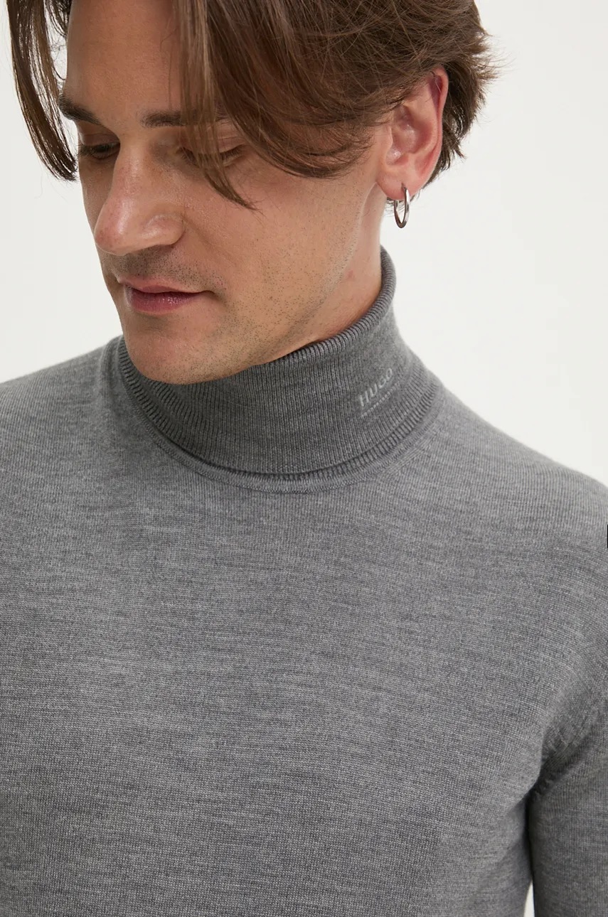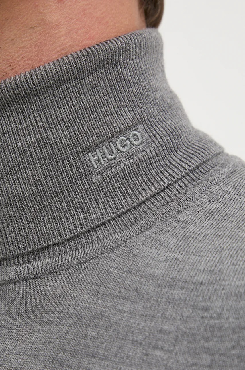 HUGO sweter wełniany męski kolor szary lekki z golferm