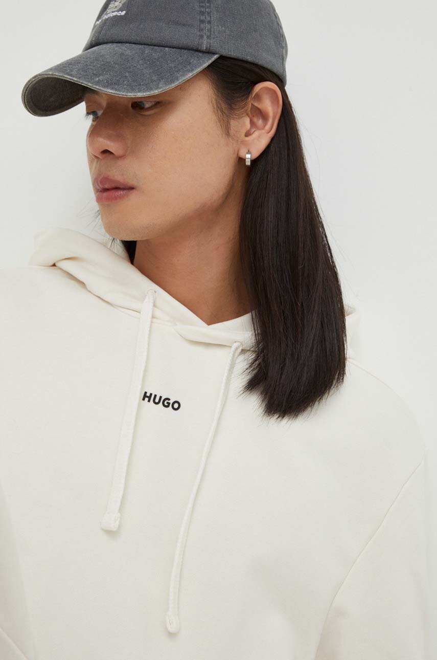 HUGO bluza bawełniana męska kolor beżowy z kapturem gładka 50486478
