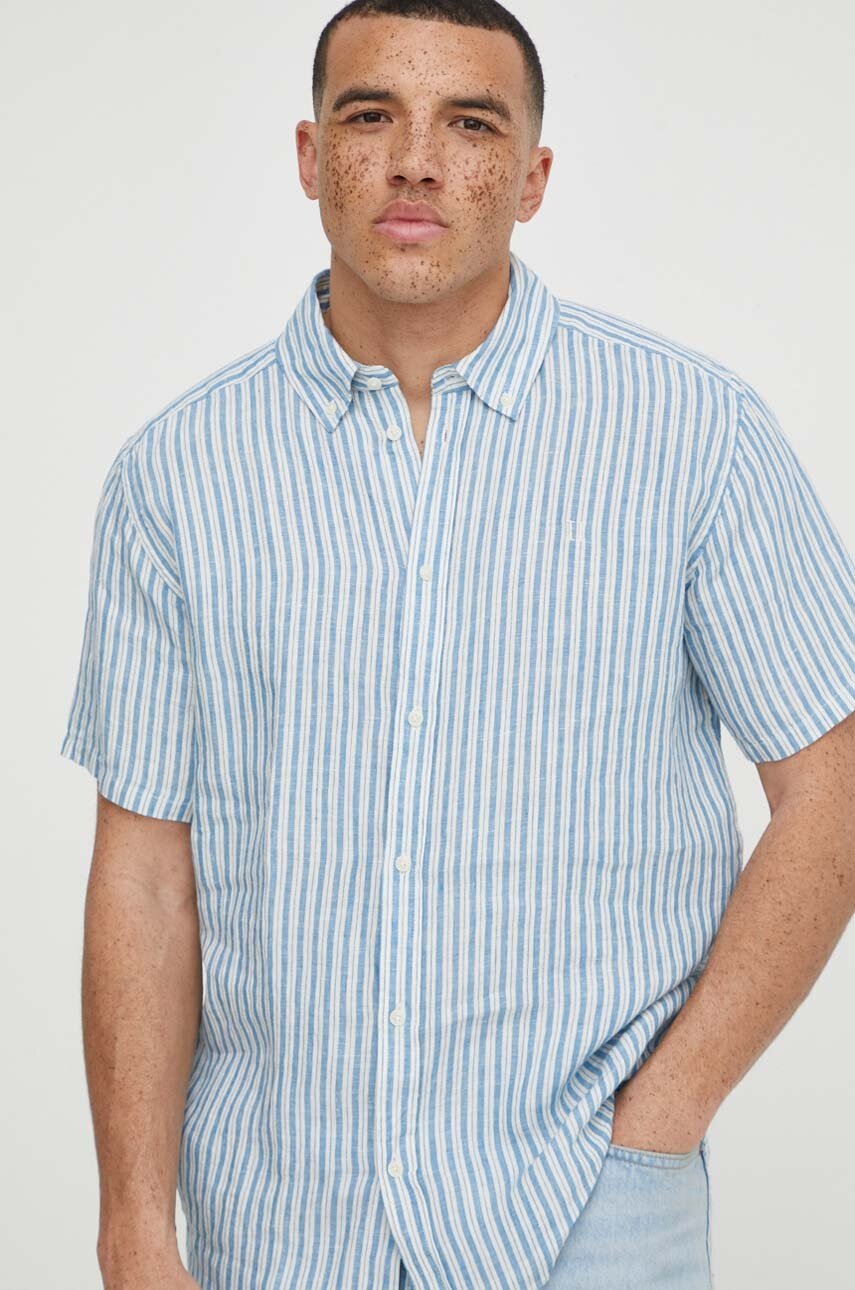 Les Deux koszula lniana kolor niebieski regular z kołnierzykiem button-down LDM401053