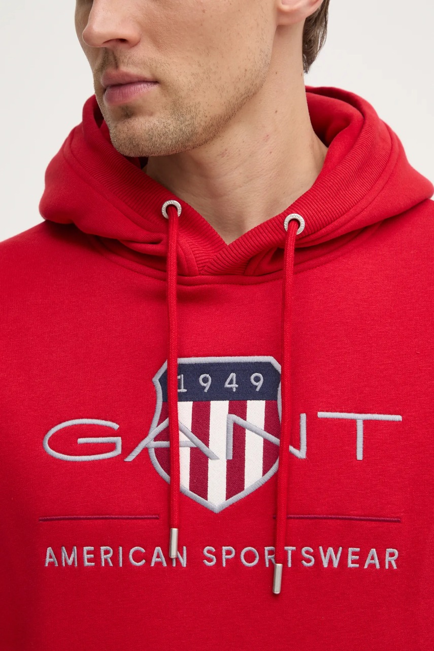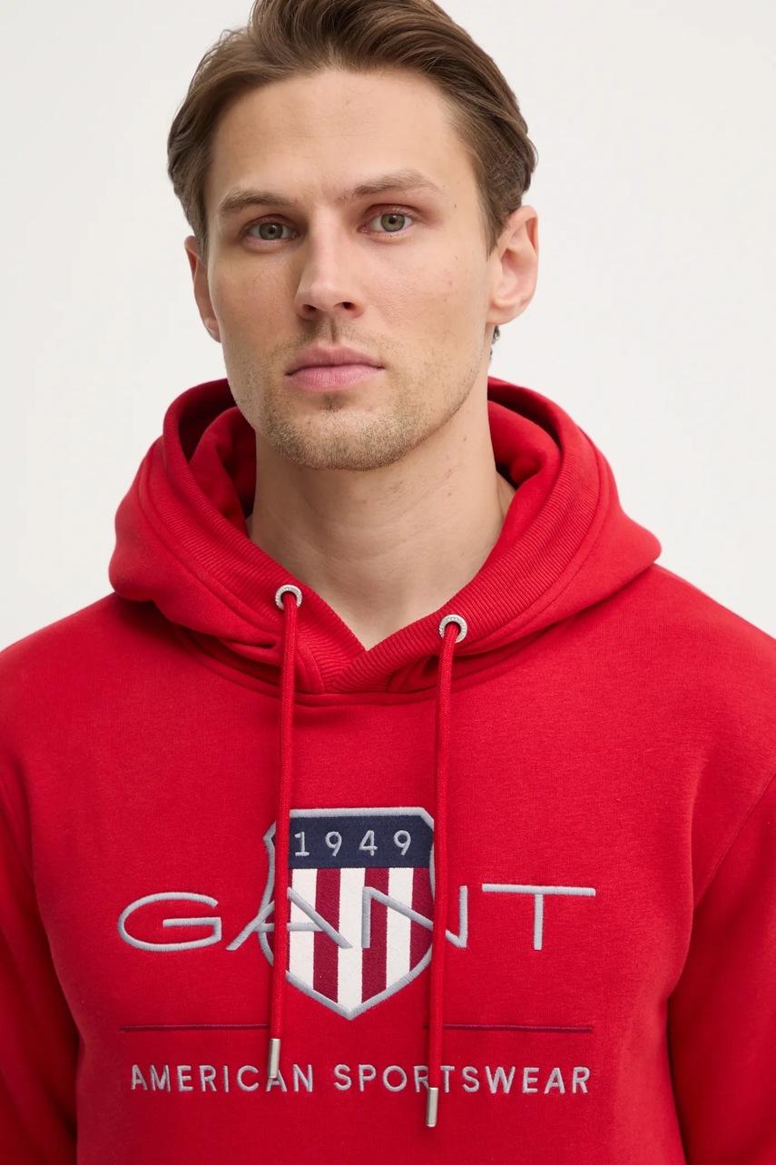 Gant bluza męska kolor czerwony z kapturem z aplikacją