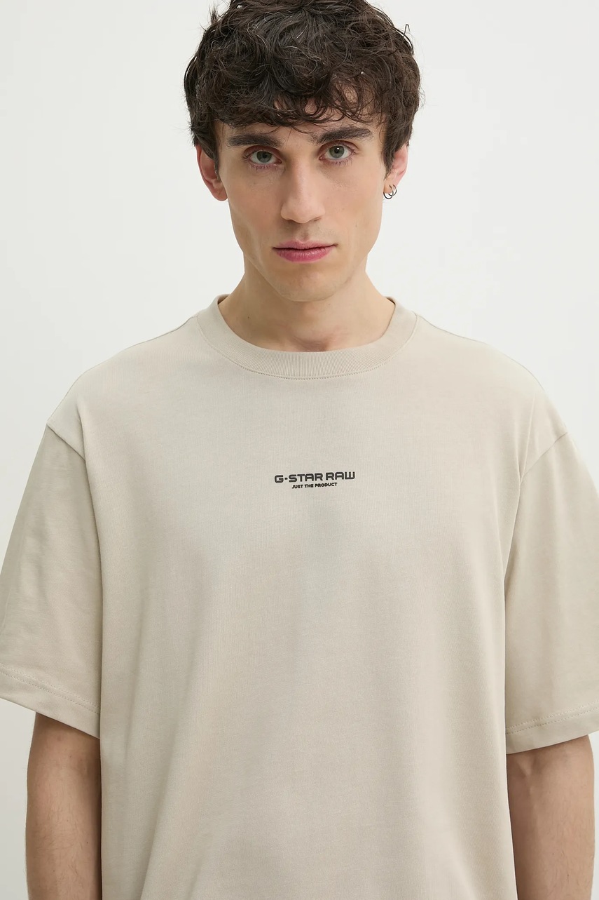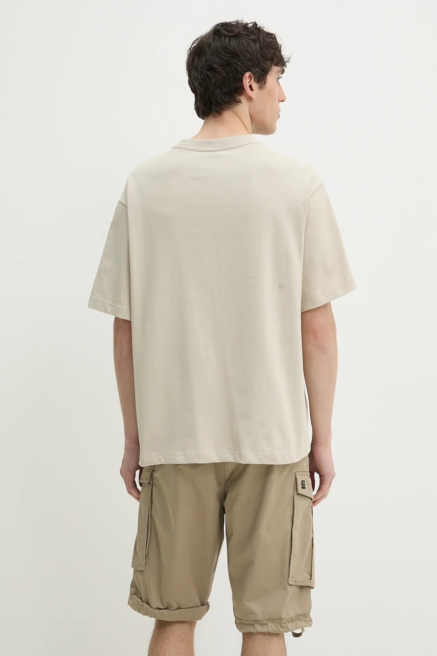 G-Star t-shirt bawełniany męski kolor beżowy z aplikacją